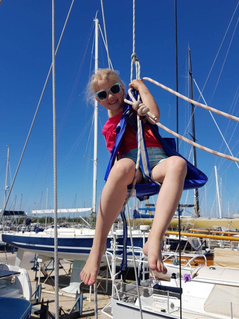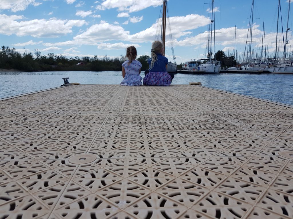 Obwohl sich der Termin, zum ins Wasser kommen und starten, immer weiter verschiebt, wird uns nicht langweilig. Die Mädels genießen das Leben am Boot und im gesamten Hafen. Sie kennen sich schon fast besser aus als wir Erwachsene. Wir fahren auf “Geheimwegen” (zwischen Booten und Gebäuden) nach Hause, holen Päckchen ab, beobachten Baby Seemöwen auf Dächern und machen Expeditionen auf Stege und schauen wo am meisten Muscheln unten hängen. Davon könnt ihr aber in den nächsten Tagen mehr lesen.