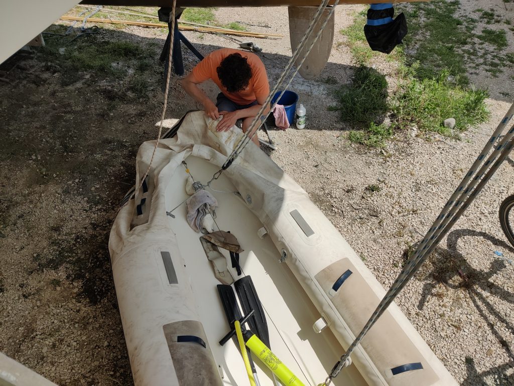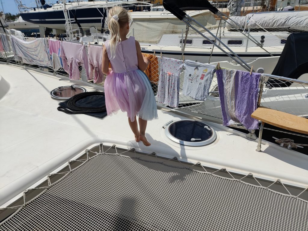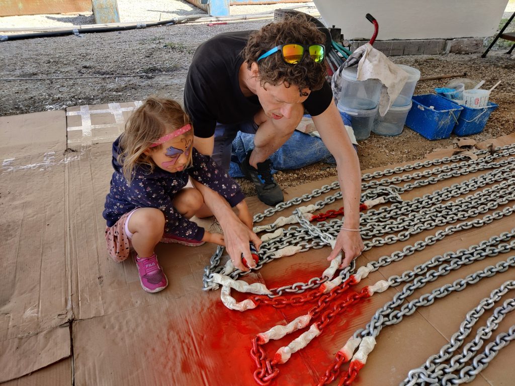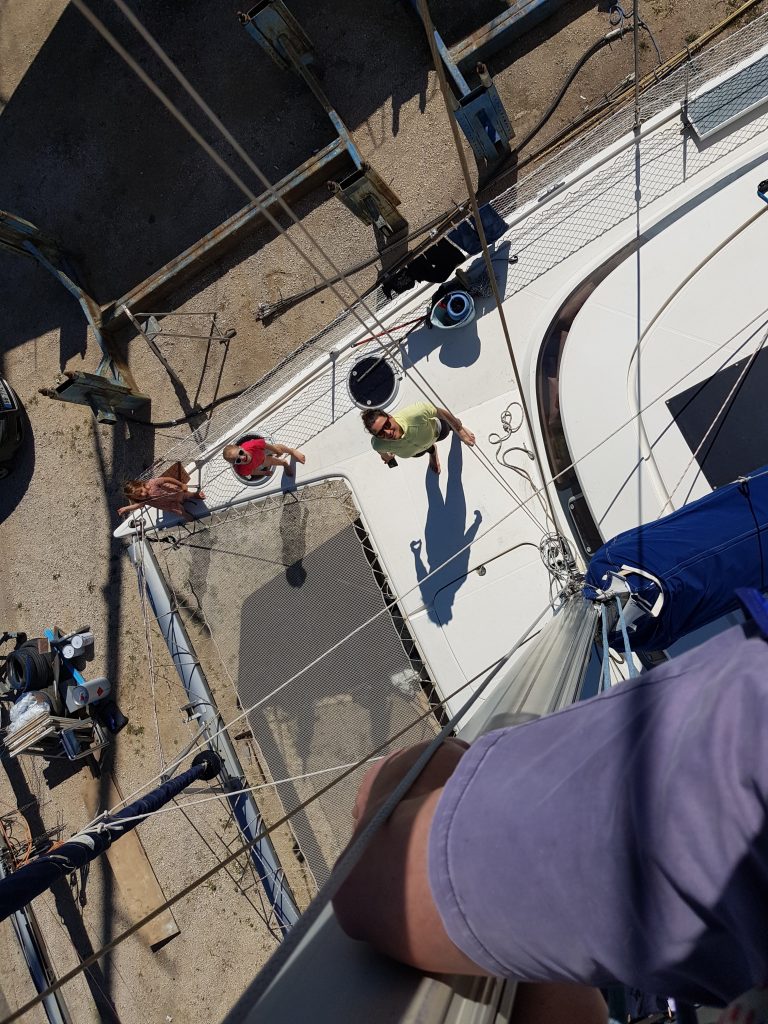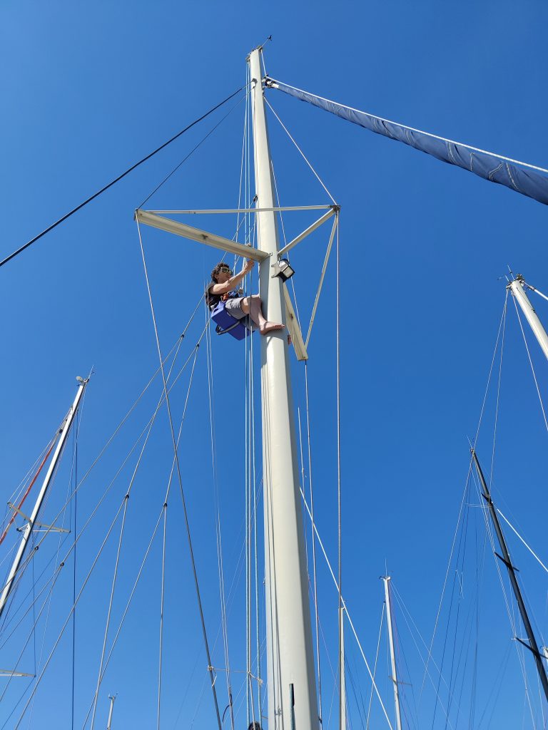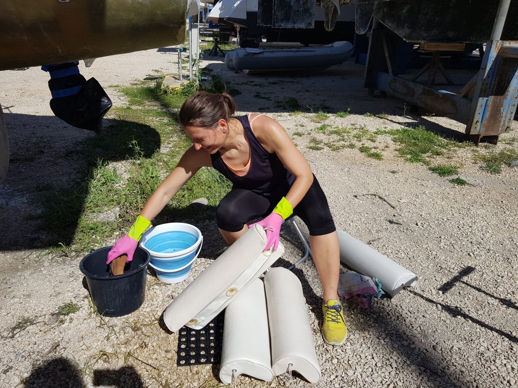 Marija und ich lernen derweil das Boot kennen. Wir putzen, reparieren und verbessern alles, was uns in die Hände kommt und damit meine ich alles. Vom Beiboot über die Toilette, die gesamten Leinen bis hinauf zur Mastspitze. Wir kontrollieren alles, belesen uns und lernen so das Boot immer besser kennen. Jegliche Ersatzteile, Leinen und Sicherheitsausrüstung werden besorgt oder gewartet.