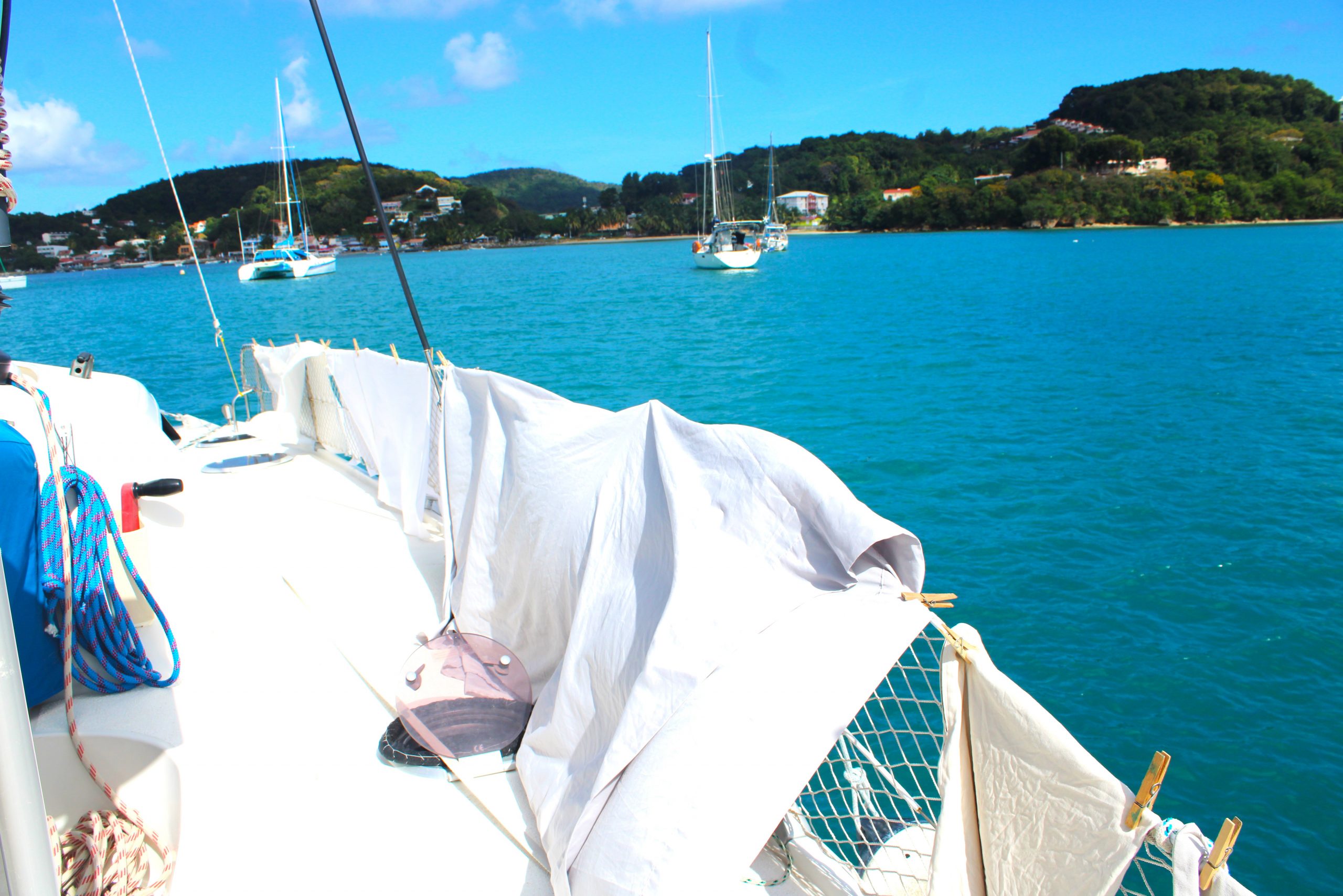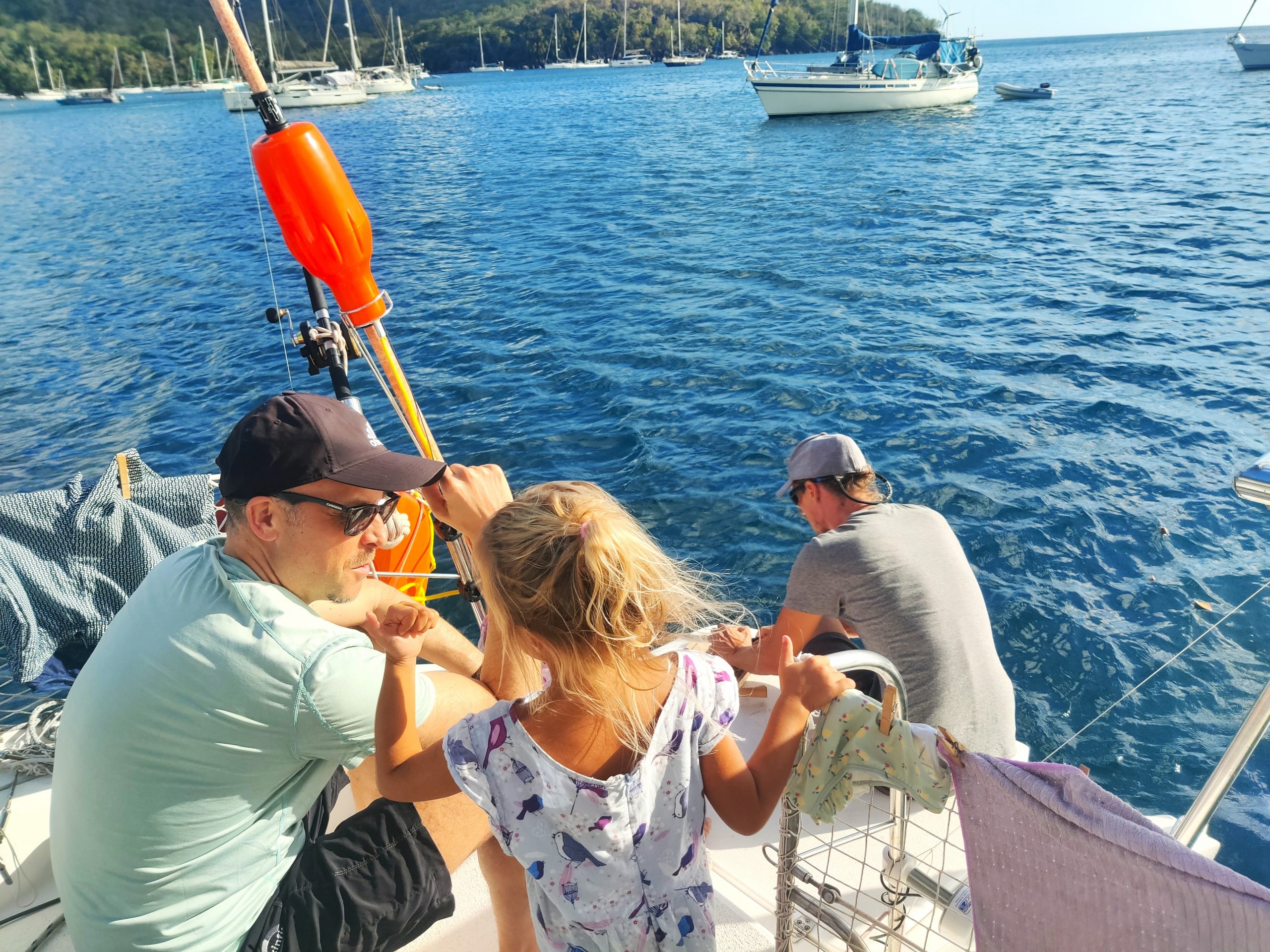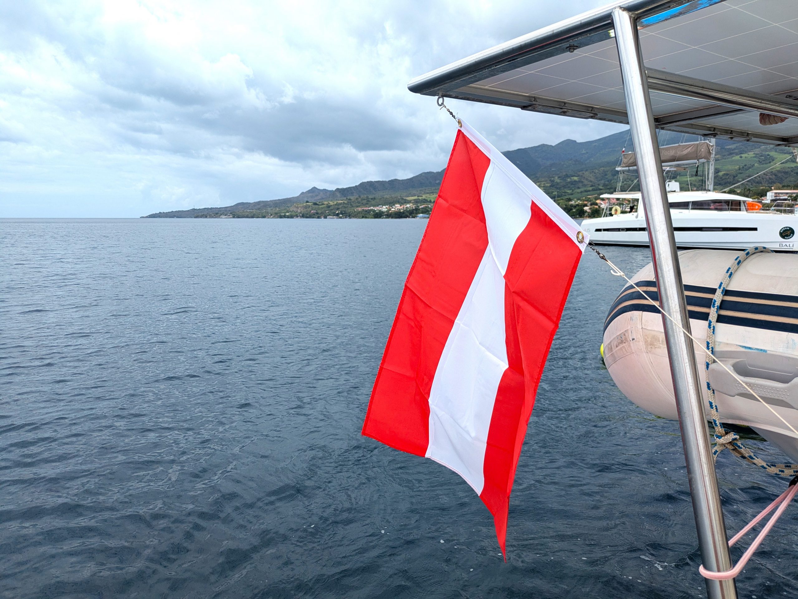 Aber: Das Boot läuft fantastisch. Mit etwa 20 Knoten Wind im Rücken kommen wir auf gute 8 Knoten Fahrt. Das fühlt sich fast schon wie Fliegen an. Als wäre das nicht genug, geht uns unterwegs auch noch ein schöner Mahi Mahi an den Haken. Eine Hälfte fürs Abendessen und die zweite Hälfte wird eingefroren für unsere baldigen Gäste aus Vorarlberg. Gegen Mittag erreichen wir Sainte-Anne im Süden von Martinique und werfen den Anker mit Blick auf Palmen, türkisblaues Wasser und das bunte Treiben an Land. Ein perfekter Empfang – und der Beginn eines besonderen Inselaufenthalts.😀