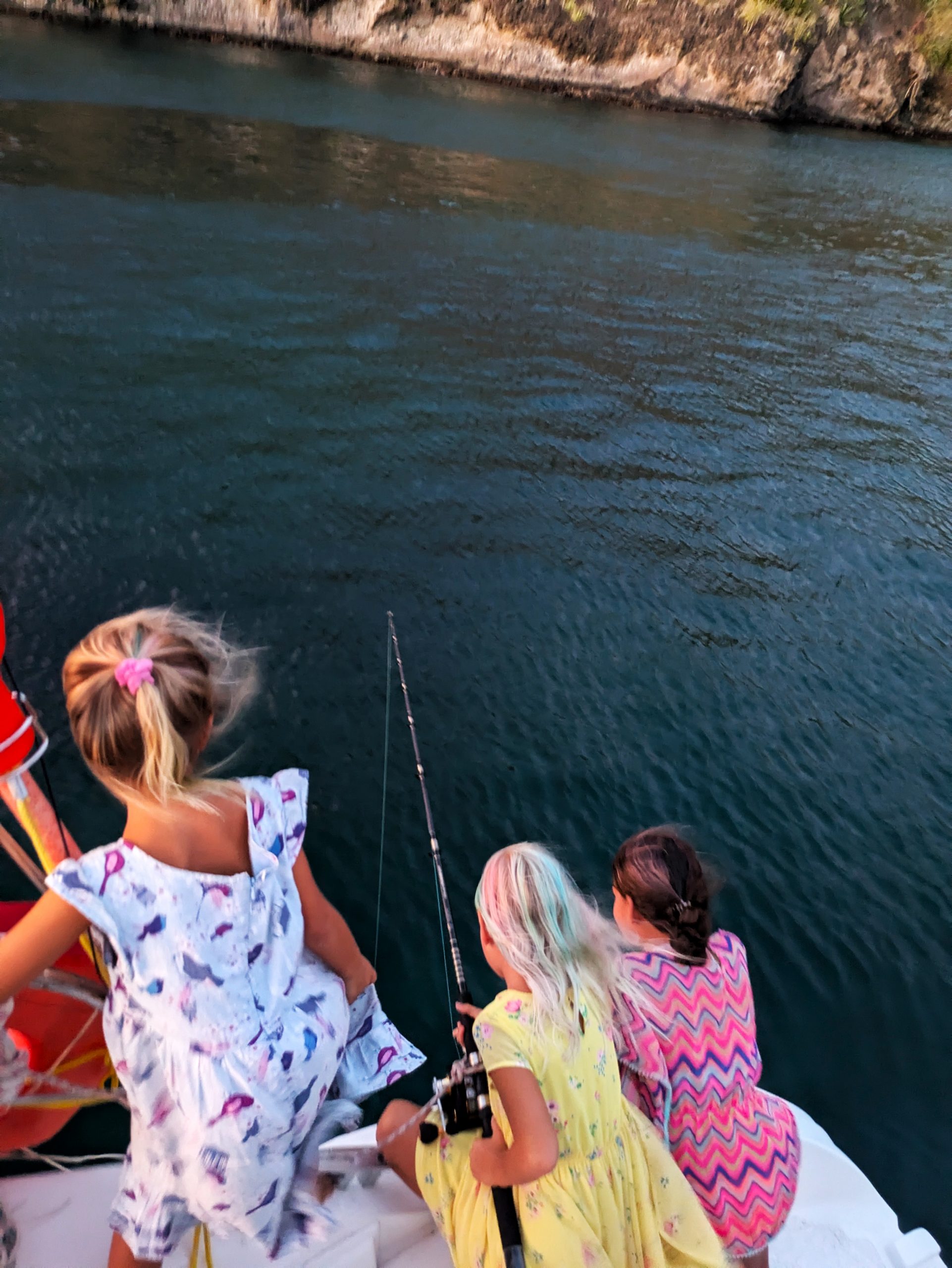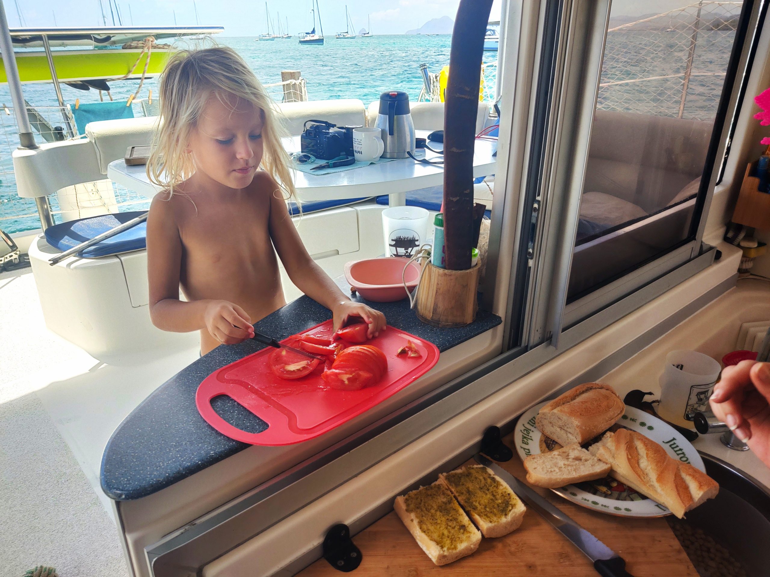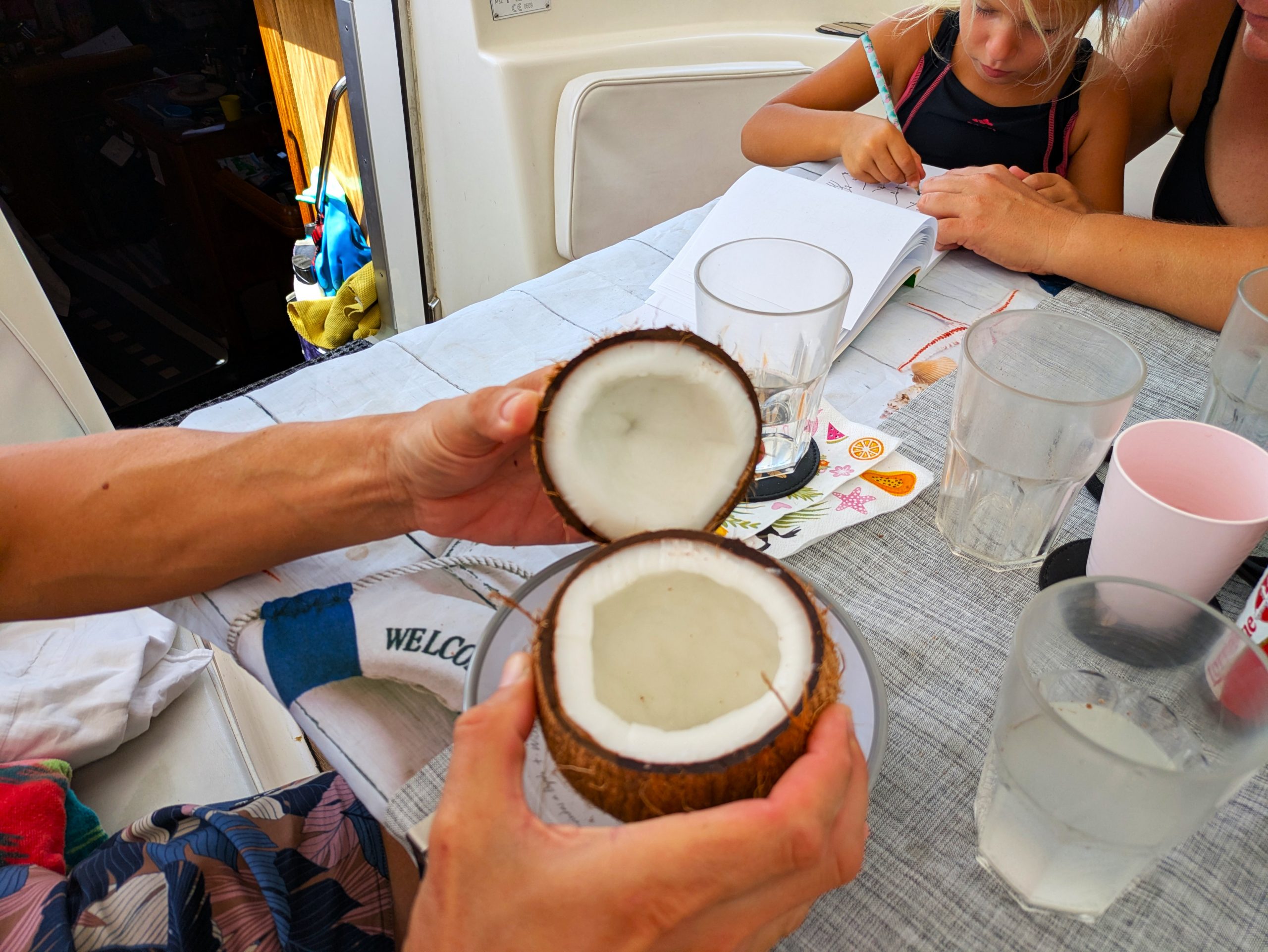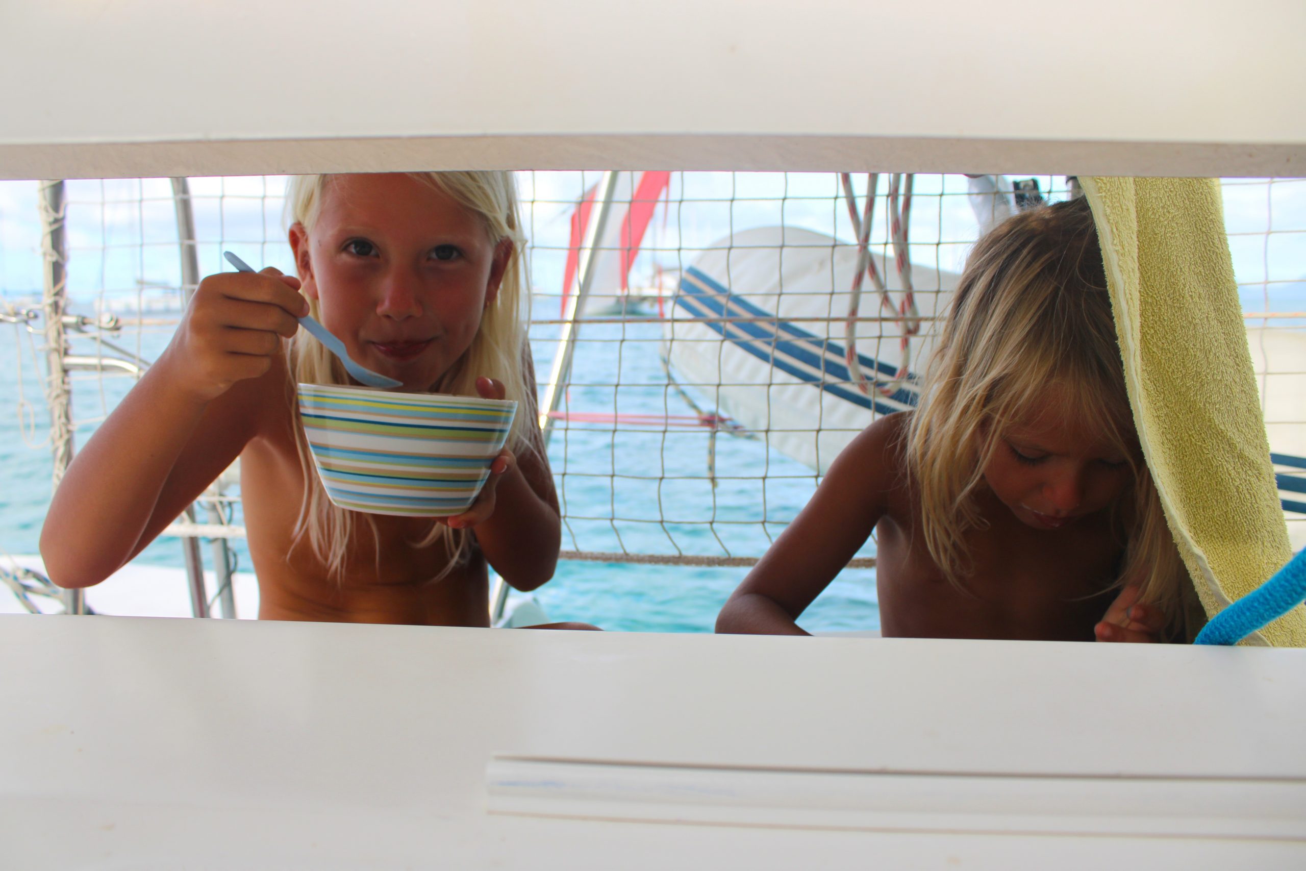Coole Geschichte: Hier in der Bucht haben wir durch Zufall mitbekommen, dass unsere Dorothea locker und ohne Probleme mit ihren vier Jahren auf 3,5 Meter Tiefe tauchen kann und uns ins Wasser gefallene Sachen hochholen kann. Die drei Mädels machten einen kleinen Wettbewerb, wer die Sachen am schnellsten holt. Noch bevor bis drei gezählt wurde, war Dorothea schon unten und brachte alles nach oben. Wir waren sprachlos und total baff, wie entspannt sie so tief tauchen kann. Ein richtig großer Stolz für uns und auch für ihre große Schwester!