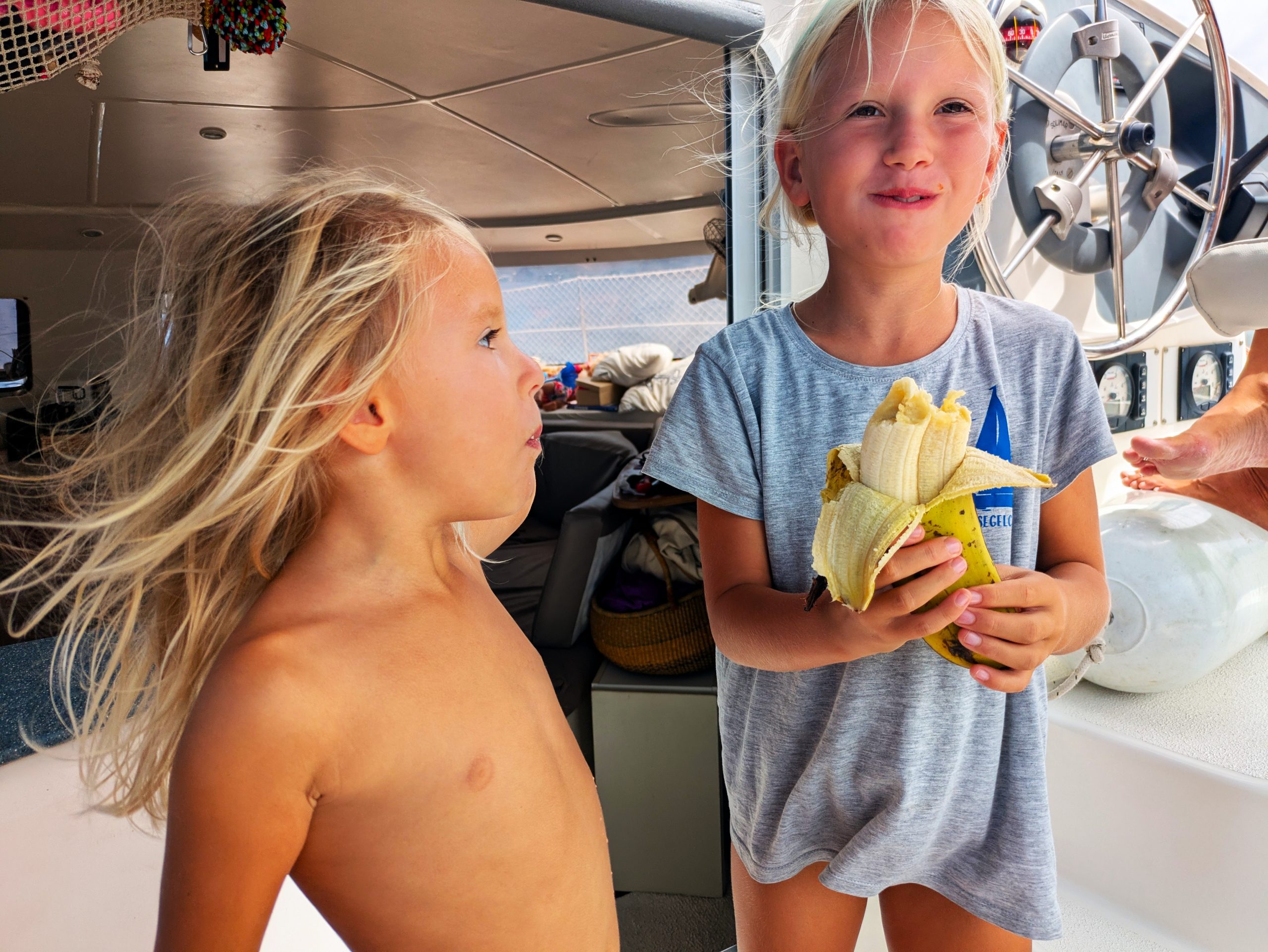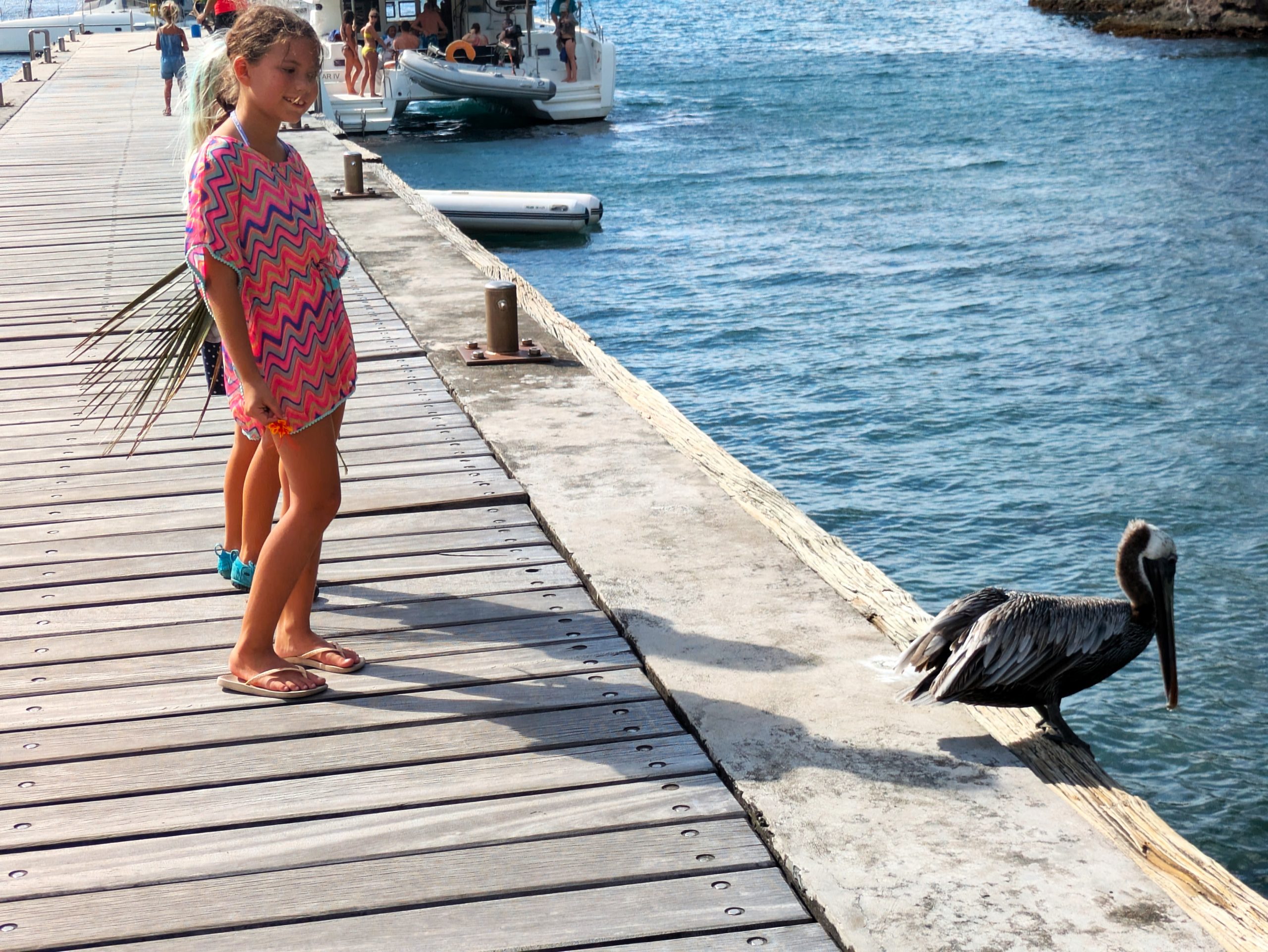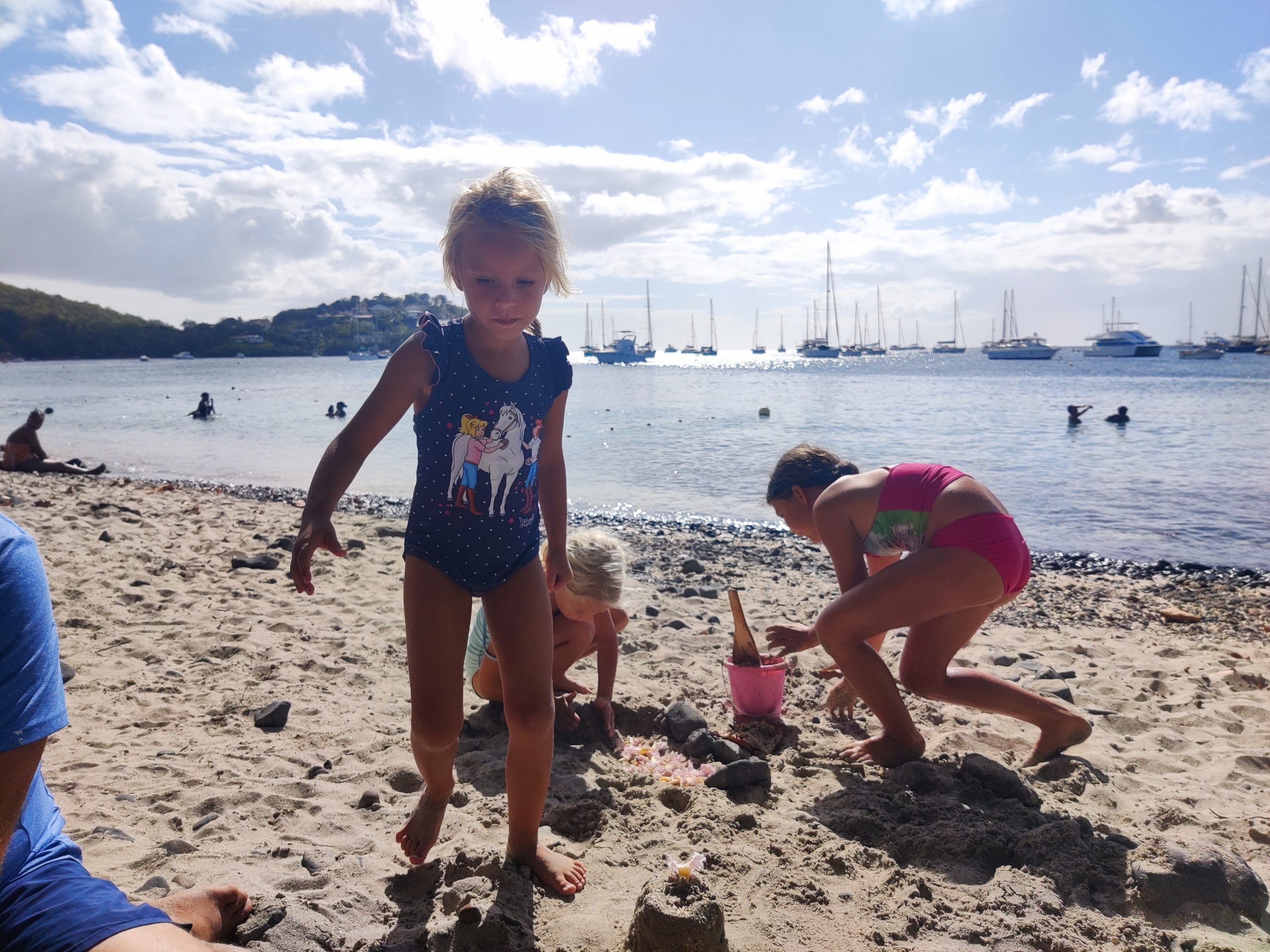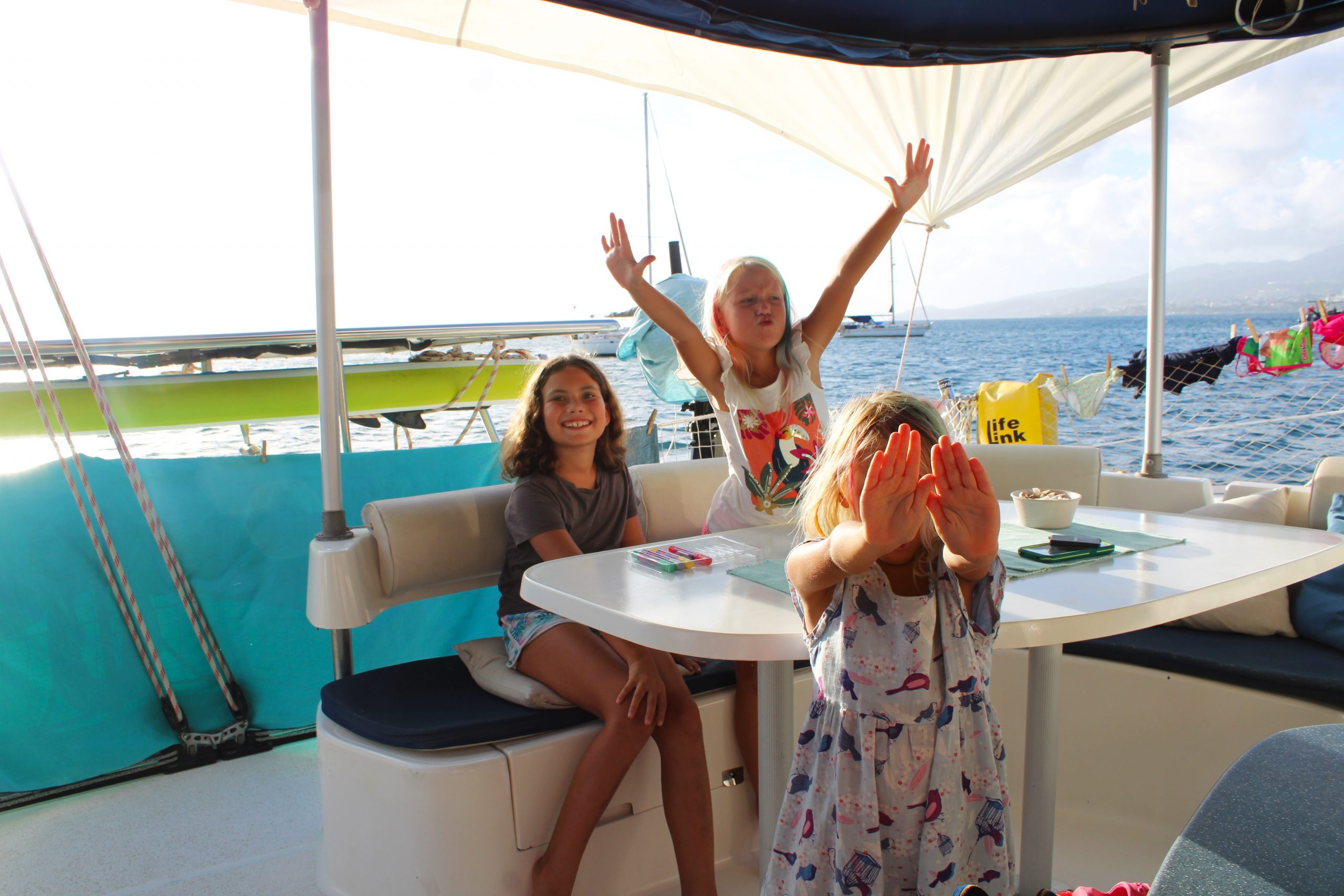 Unsere Mädchen liebten hier ihr Lieblingsspiel: „Hallo sagen“ , und zwar zu jedem Boot mit deutscher, österreichischer oder Schweizer Flagge. Wer nicht winkt, wird ignoriert. Wer zurückwinkt, kriegt ein strahlendes Lächeln oder wird sogar zu uns eingeladen. Karibische Diplomatie à la Kinder. 😅