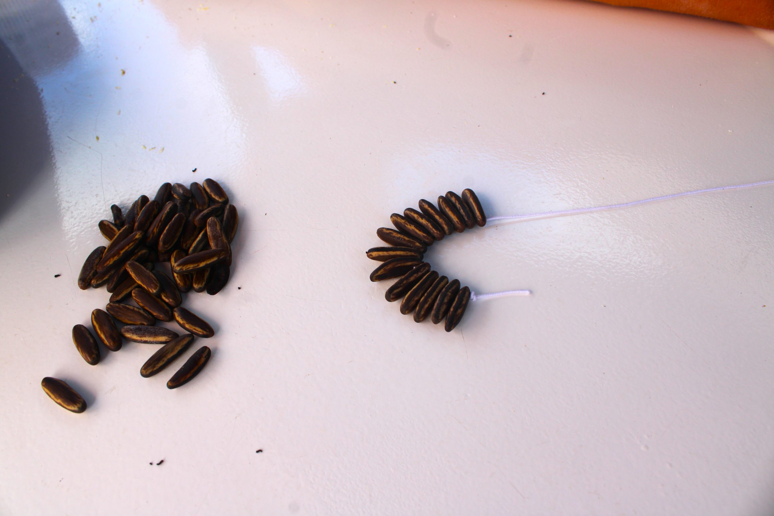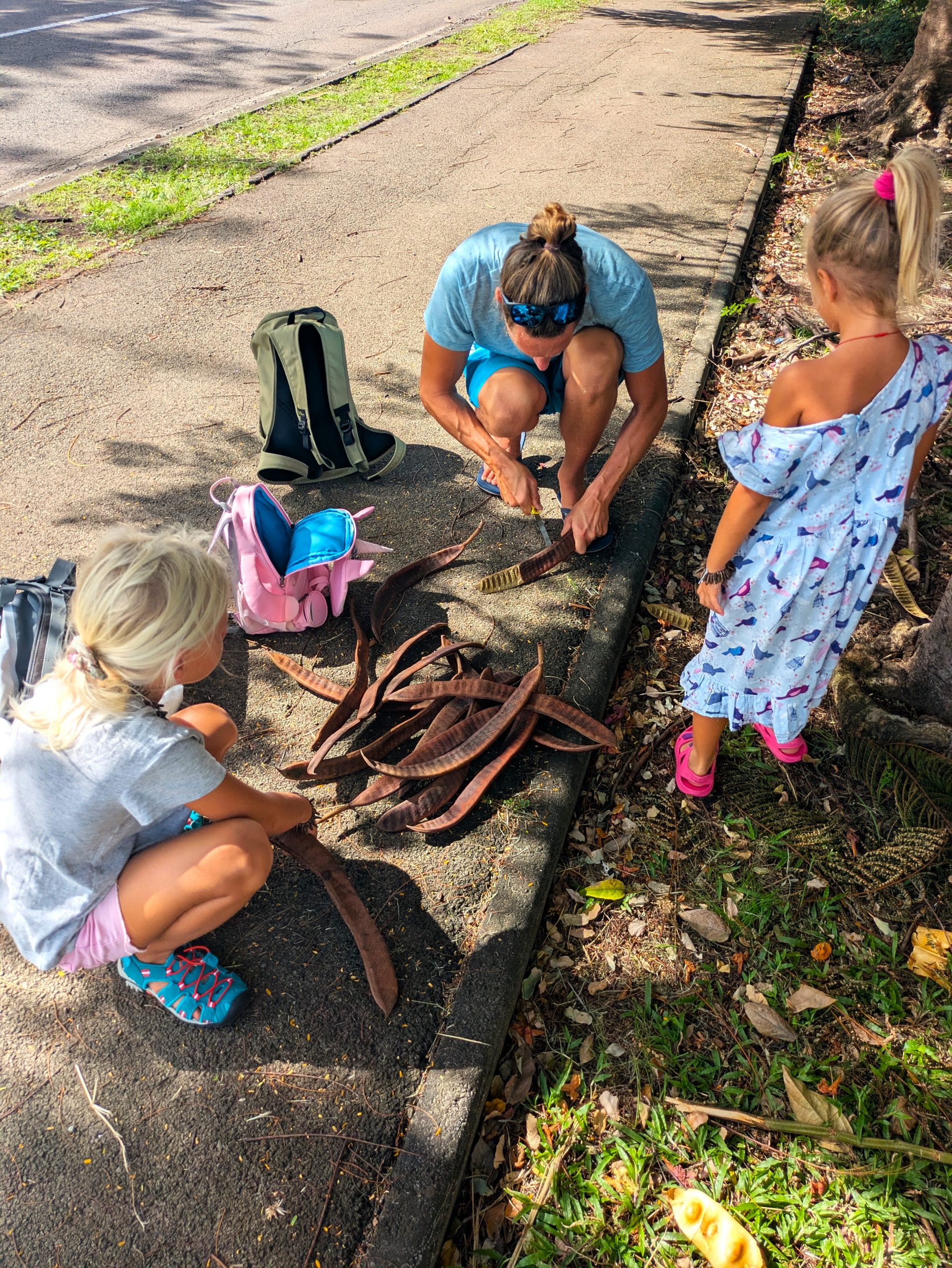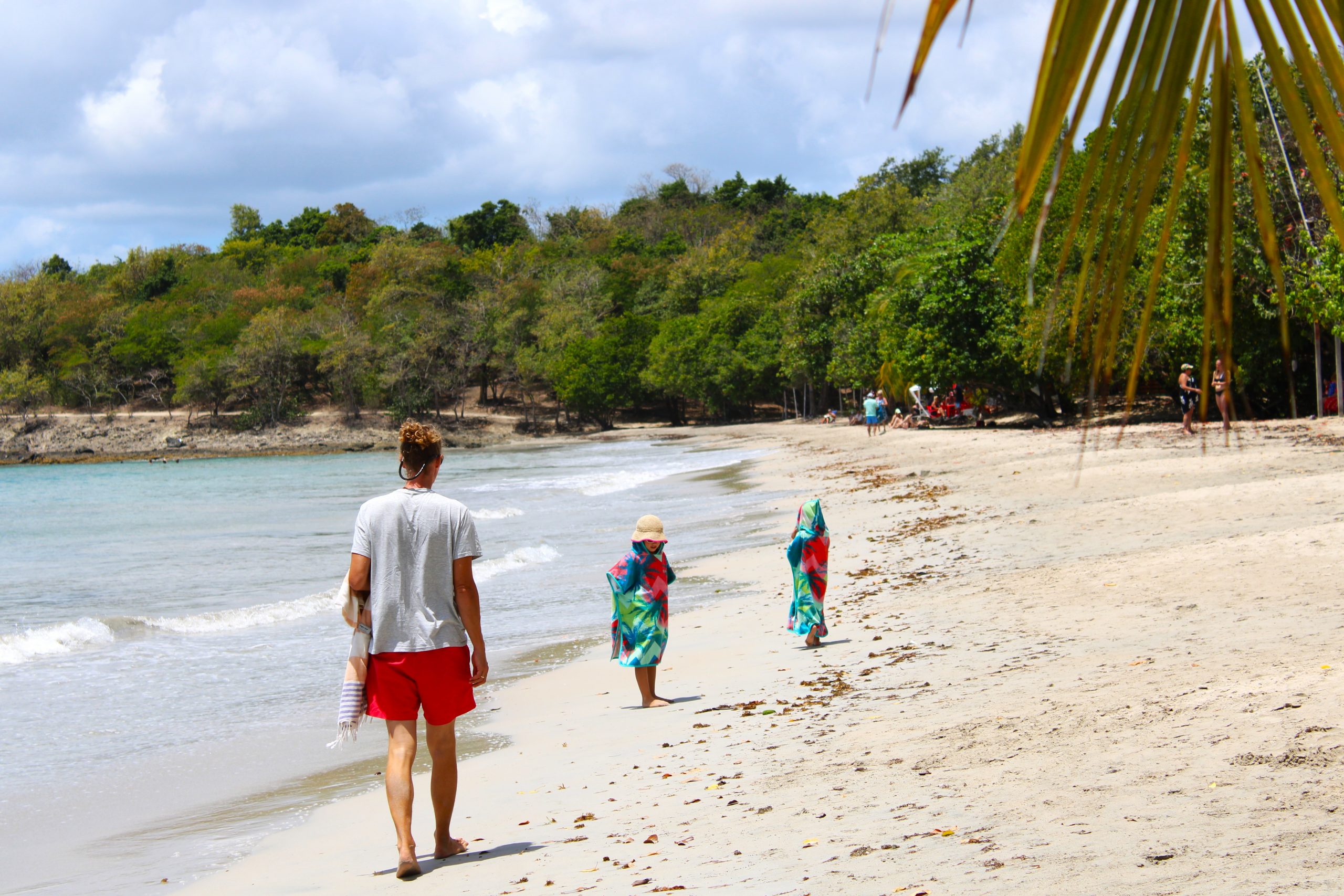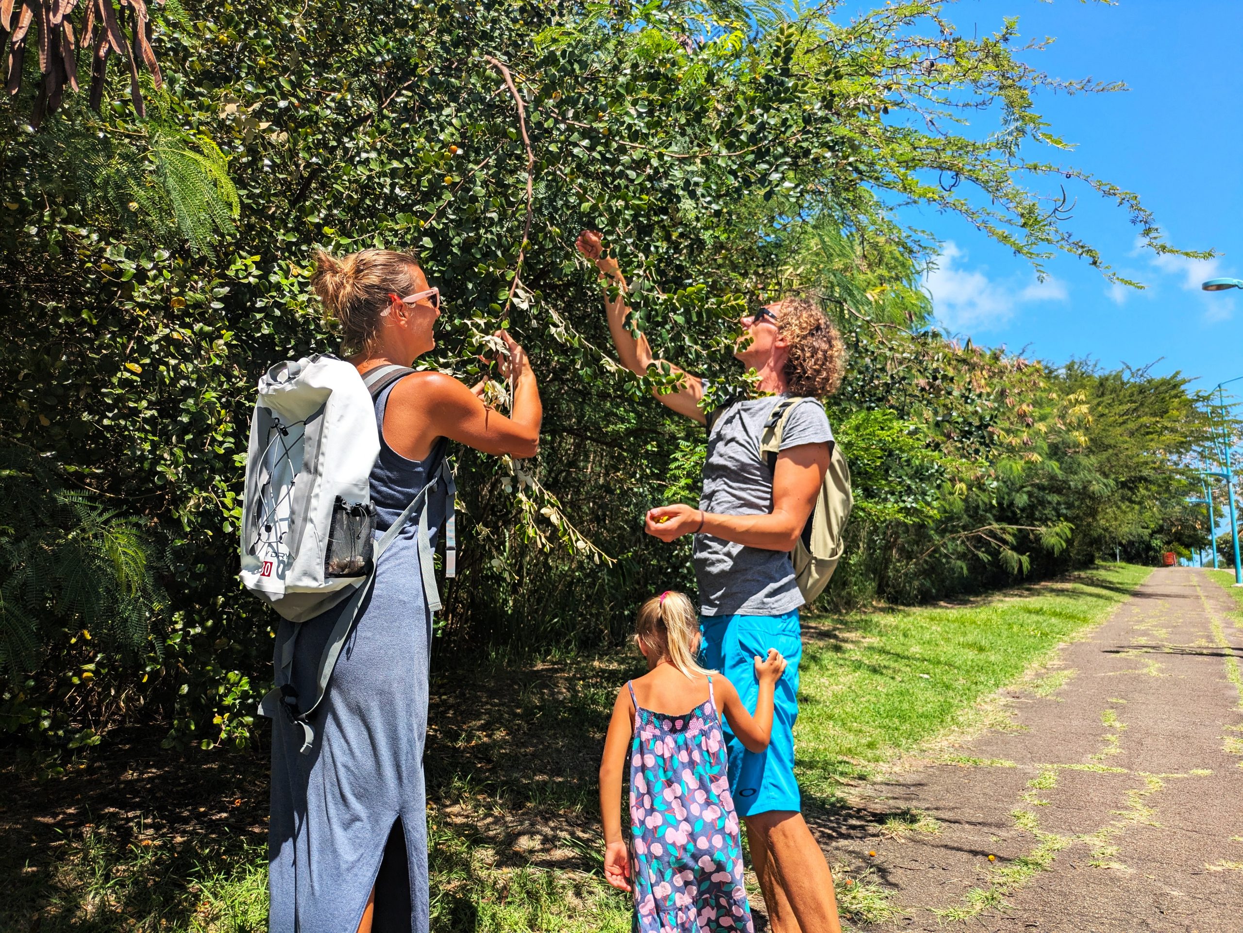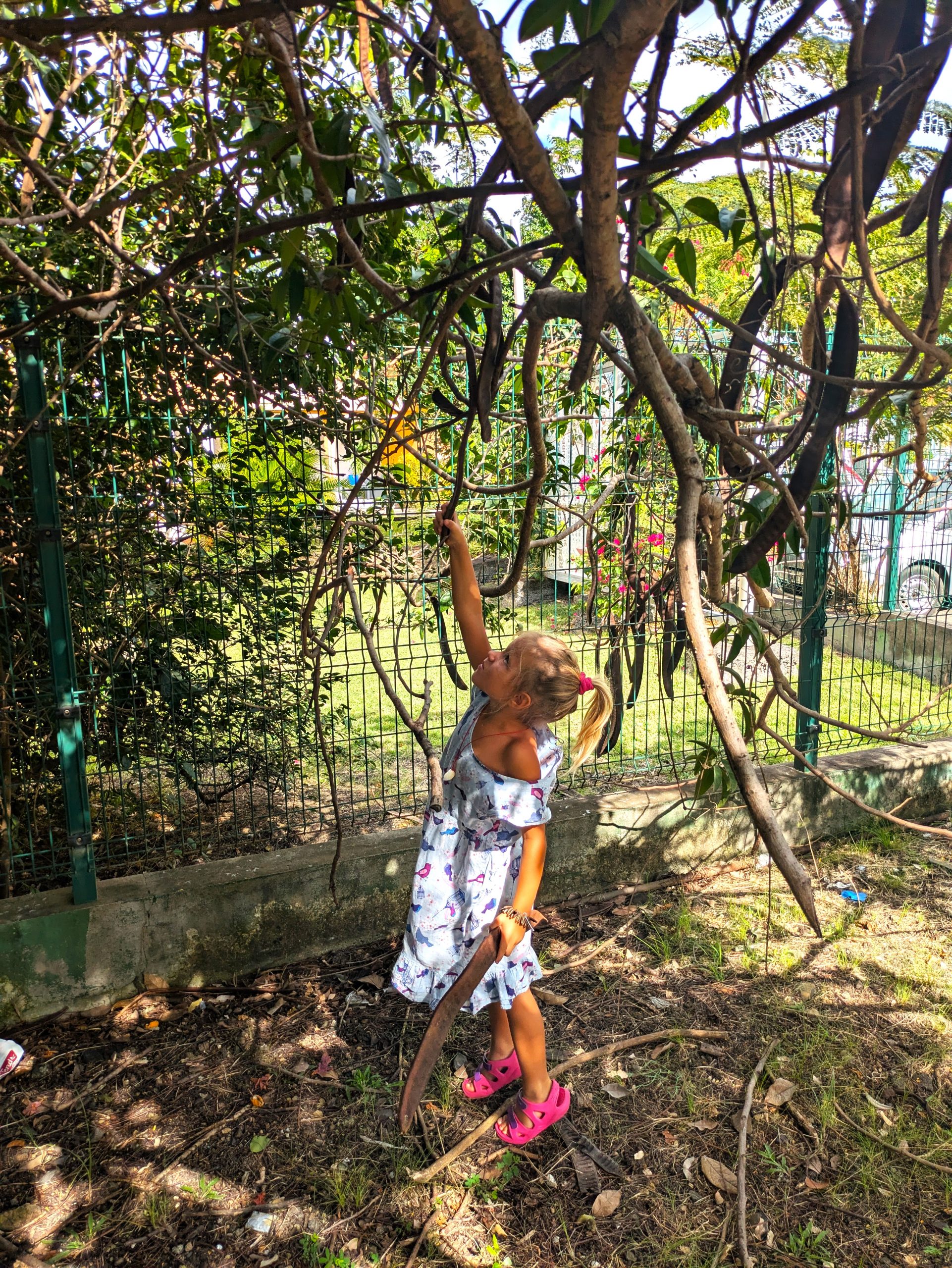 Auch wenn der Karneval das Highlight war in den ersten drei Tagen, Sainte-Anne hatte noch mehr auf Lager. So zum Beispiel einen Zahnarztbesuch. Jawohl, auch in der Karibik darf das echte Leben nicht fehlen. Aber da wir ohnehin vieles zu Fuß erledigten, wurde der Arztbesuch zu einem kleinen Entdeckungsspaziergang. Mit dabei: zwei motivierte Kinder, ein paar schattige Bäume, neugierige Blicke in Gärten und, zurück auf dem Weg, ein paar kreative Fundstücke. Geheimnisvoll klappernde Samen und andere interessante Naturmaterialien – plötzlich war klar: Wir basteln! DIY auf Karibisch. Schmuck, Rasseln, Musikinstrumente. Alles selbst gemacht mit dem, was uns unterwegs in die Hände fiel.