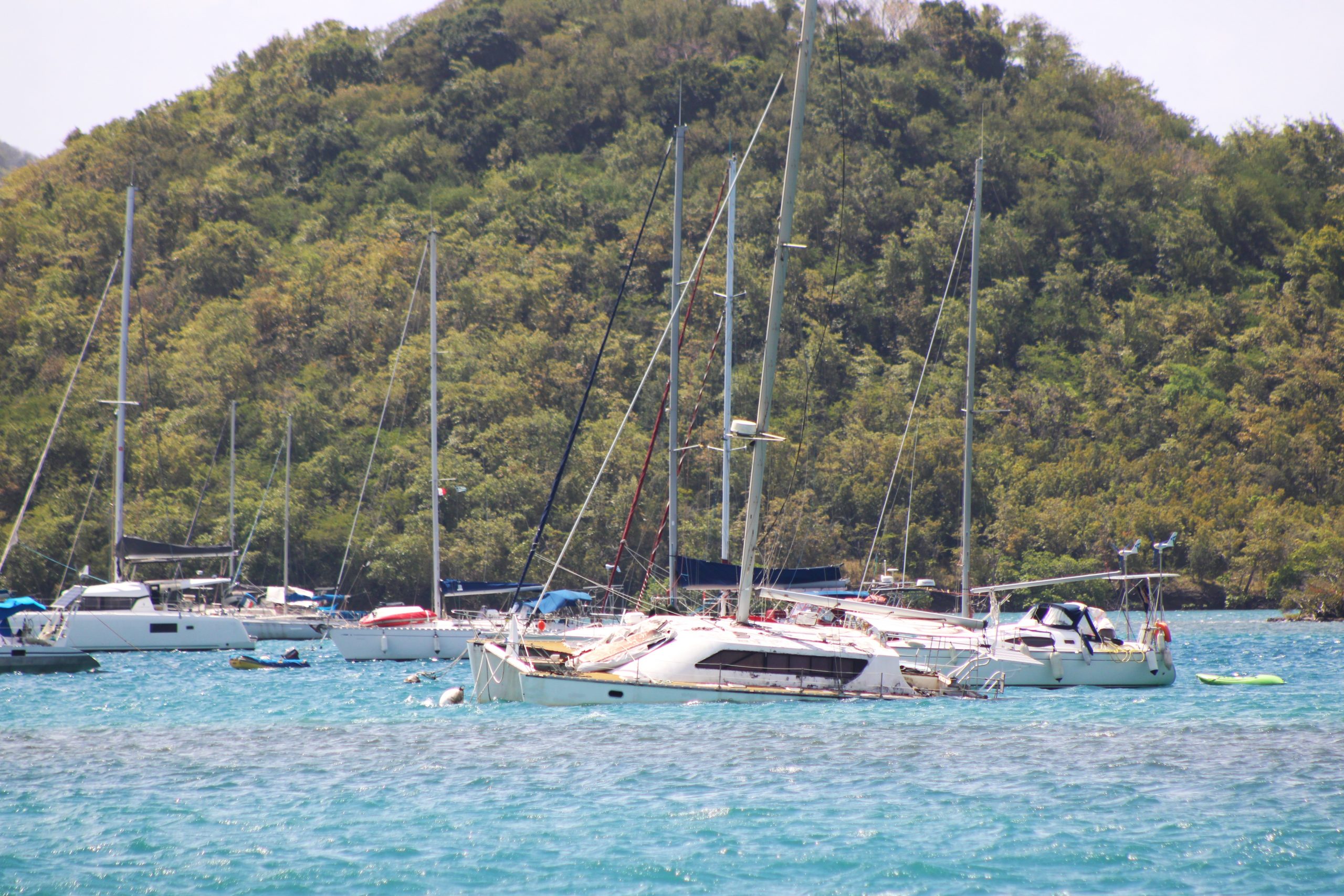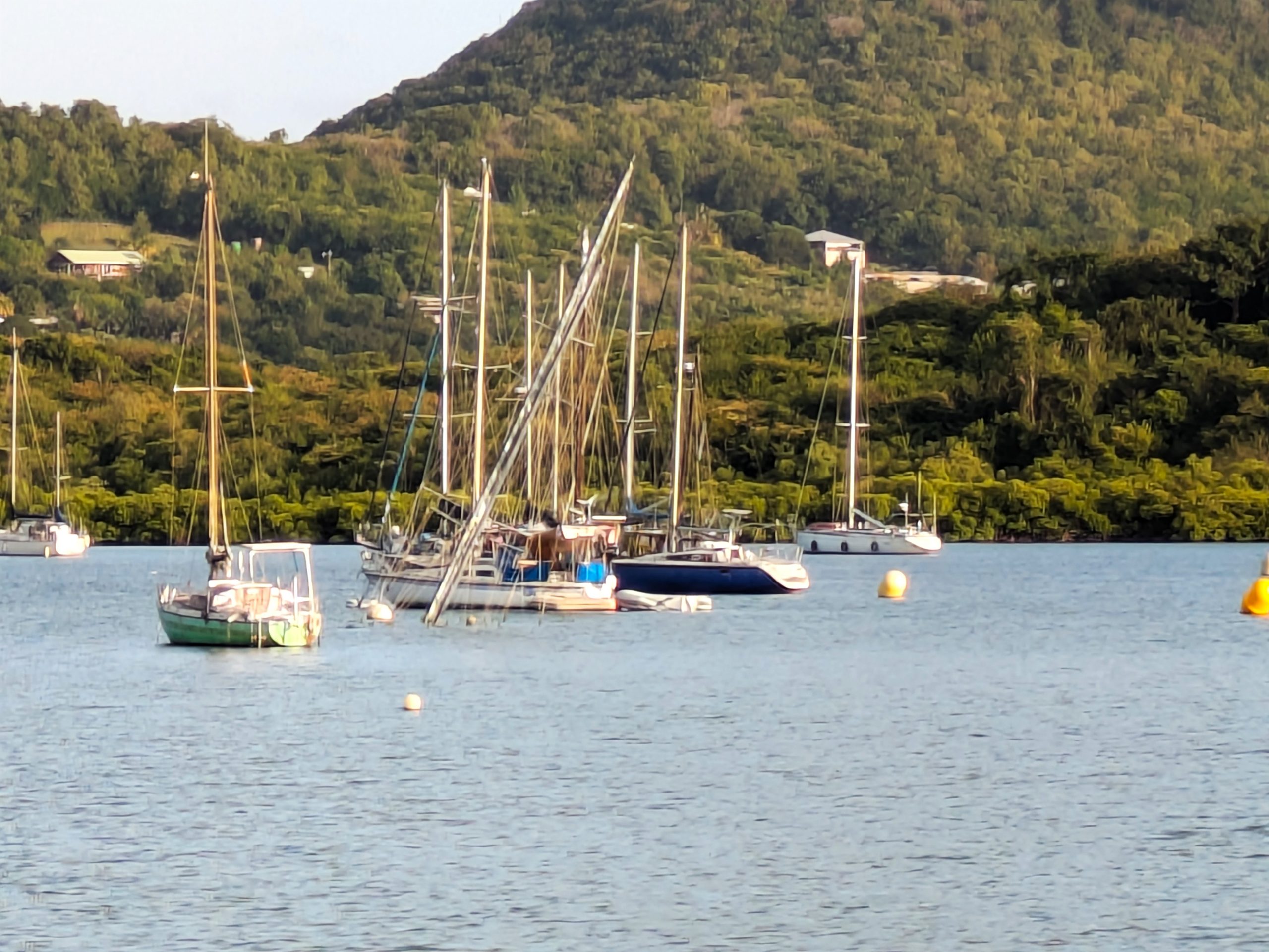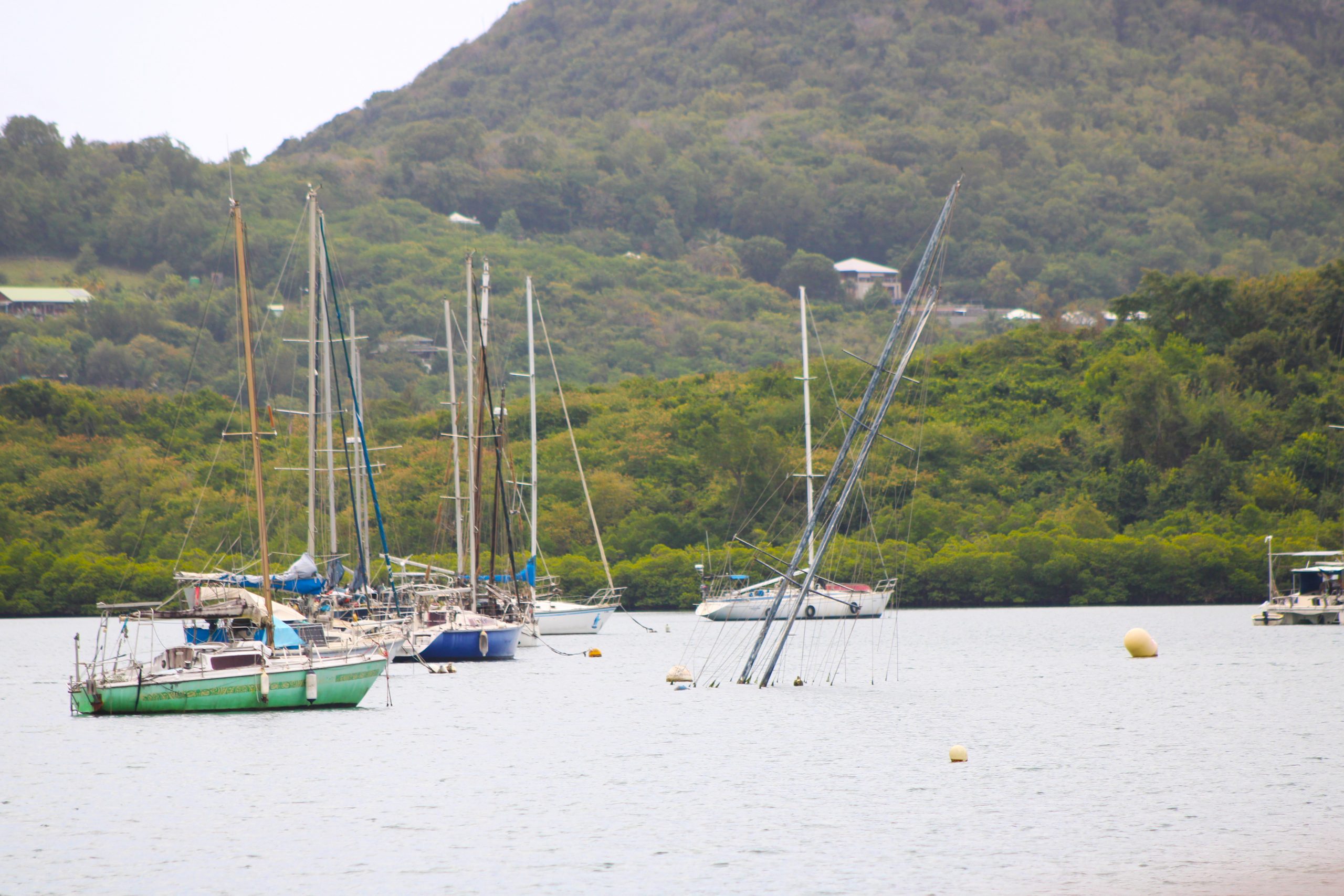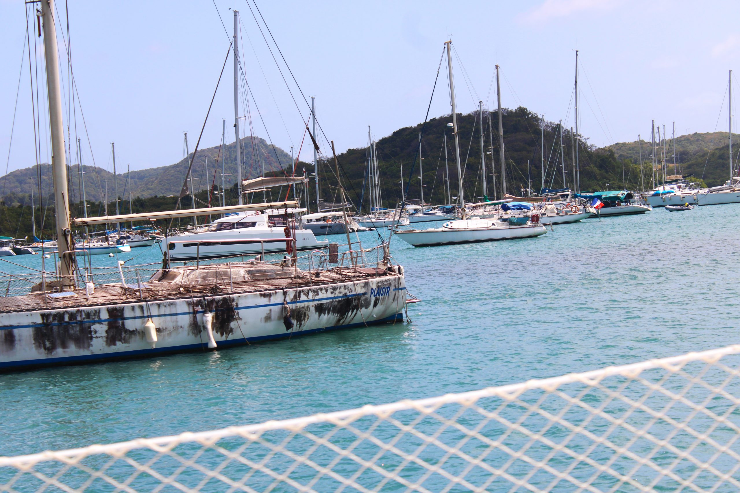 Was sonst noch super spannend war für uns: die vielen Wracks und vergessenen Boote in der ausgedehnten Bucht von Le Marin. Teils vom Sturm zerstört, teils einfach verlassen, liegen sie dort wie stumme Zeugen vergangener Reisen. Schief, überwuchert oder halb versunken. Manche davon dienen inzwischen als Behausung. Einheimische oder auch einige Langzeitsegler, die sich dauerhaft eingerichtet haben, leben auf den zurückgelassenen Booten, zwischen Solarpanelen, flatternden Wäscheleinen und improvisierten Aufbauten. Eine fast surreale Szenerie, die zeigt, wie eng Reisen, Aussteigen und Verweilen in der Karibik miteinander verknüpft sind.