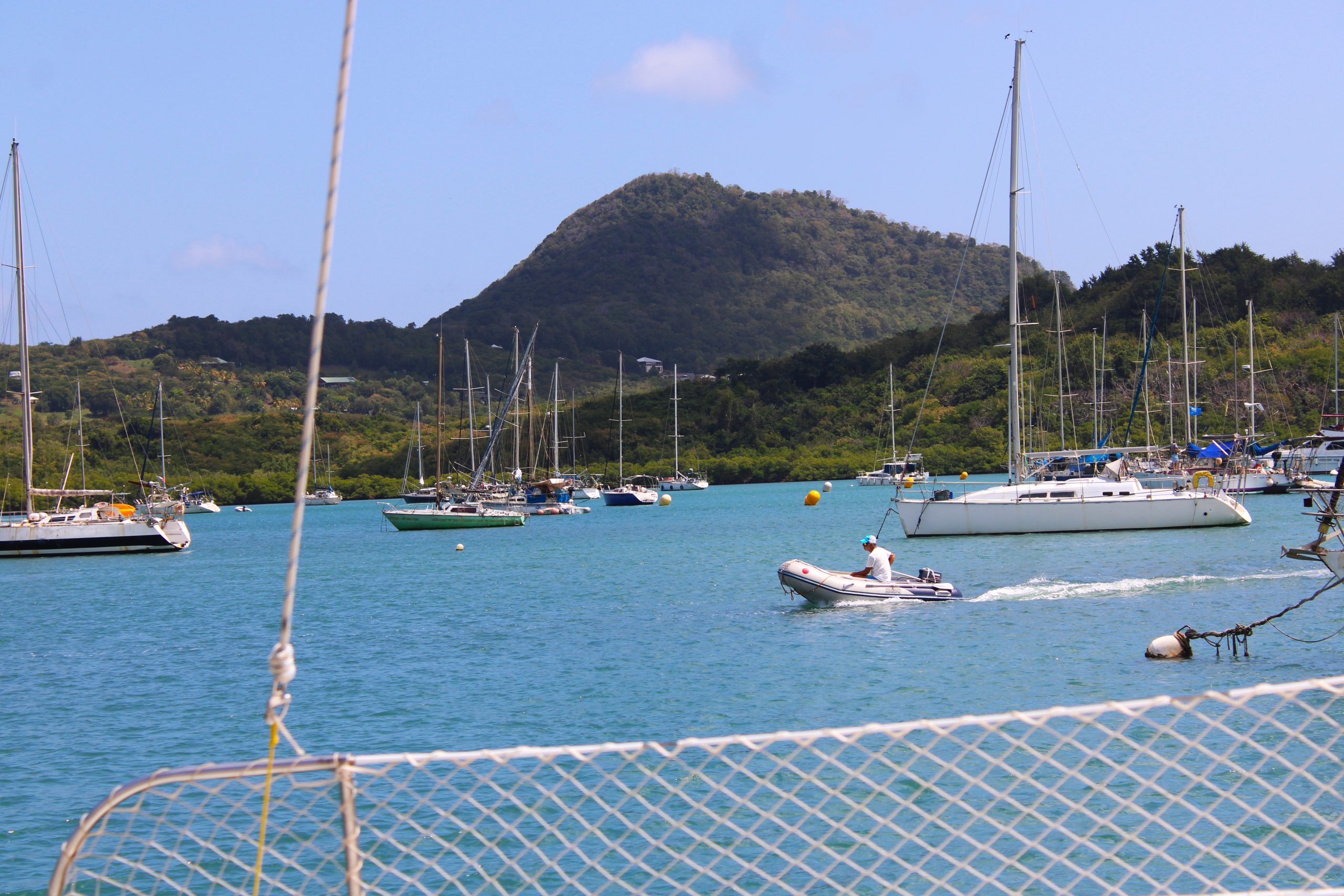 Natürlich darf auch der Segler-Alltag nicht fehlen, denn der ist in Sainte-Anne und dem benachbarten Le Marin erstaunlich komfortabel. Die Bucht gleicht einem schwimmenden Dorf: Hunderte Segelboote, viele Familien, Kinderlachen überall. Im nahegelegenen Le Marin wartet dann das Gegenteil von Improvisation. Fast schon Hafenluxus. Mit dem Dinghy direkt vor den Supermarkt fahren? Einkaufswagen ans Boot? Französischer Käse im Kühlregal? Ja bitte! Wir fühlten uns wie an Weihnachten. Allerdings: Karibik bleibt Karibik. Es gibt, was da ist. Mal fünf Sorten Mangos, mal keine Gurken. Man kann sich noch so sehr auf Gurken oder Joghurt freuen. Wenn sie gerade nicht geliefert wurden, ist das Regal eben leer. Und niemand weiß, ob morgen neue kommen. Man lernt, flexibel zu sein. Improvisieren. Und sich über französischen Camembert und Salami zu freuen, als wären sie Gold. Das ist karibischer Alltag. Ehrlich, manchmal leicht frustrierend, aber vor allem: entschleunigend.