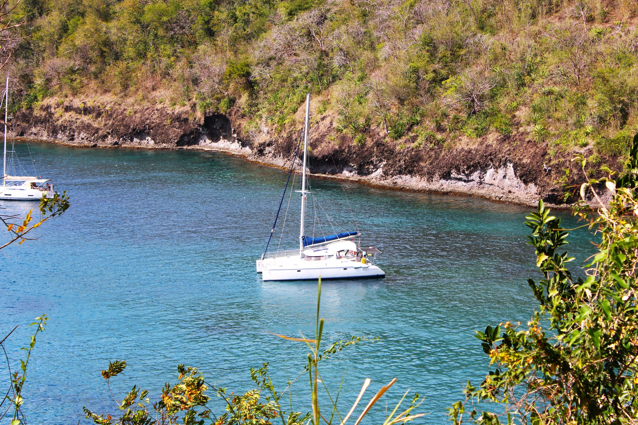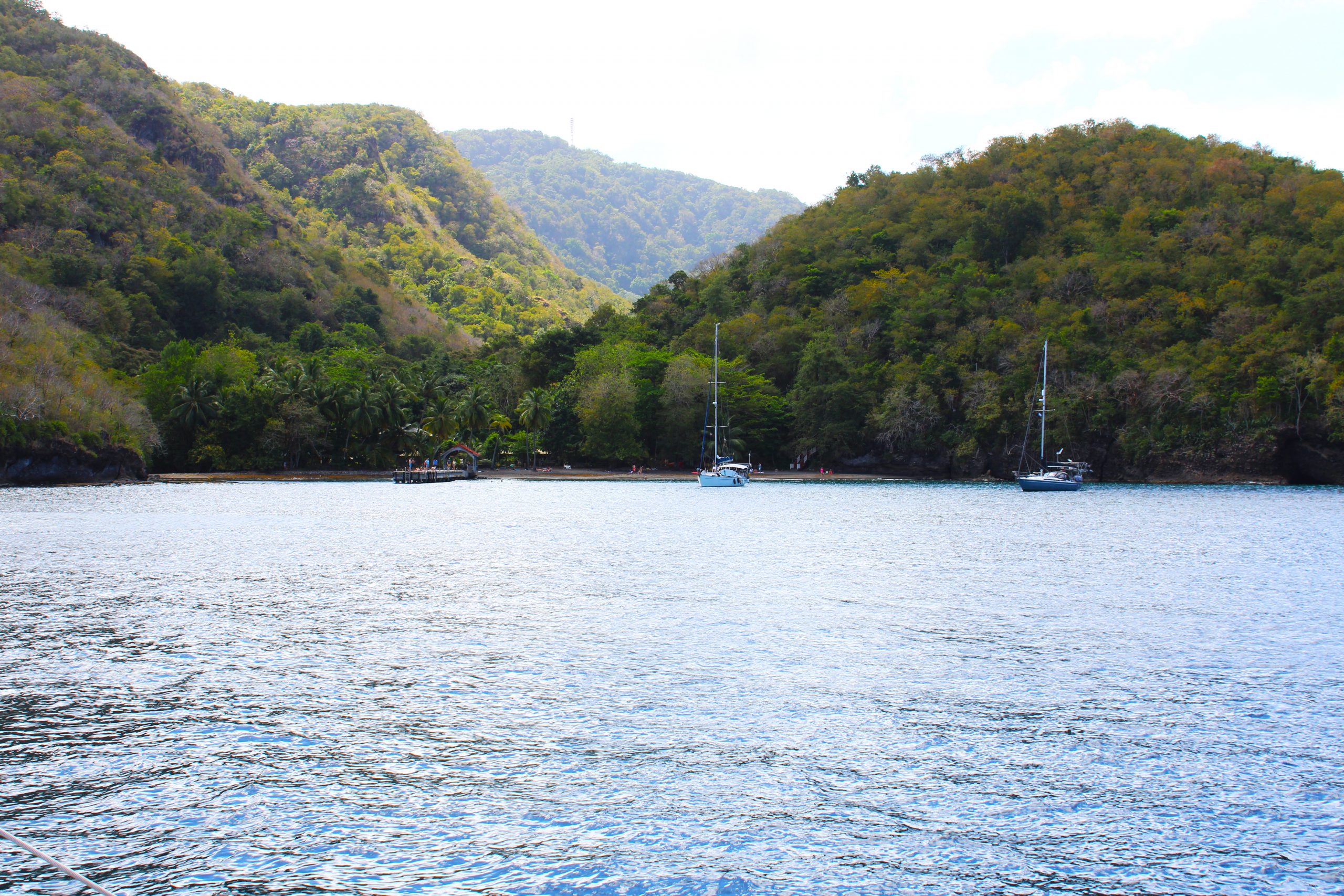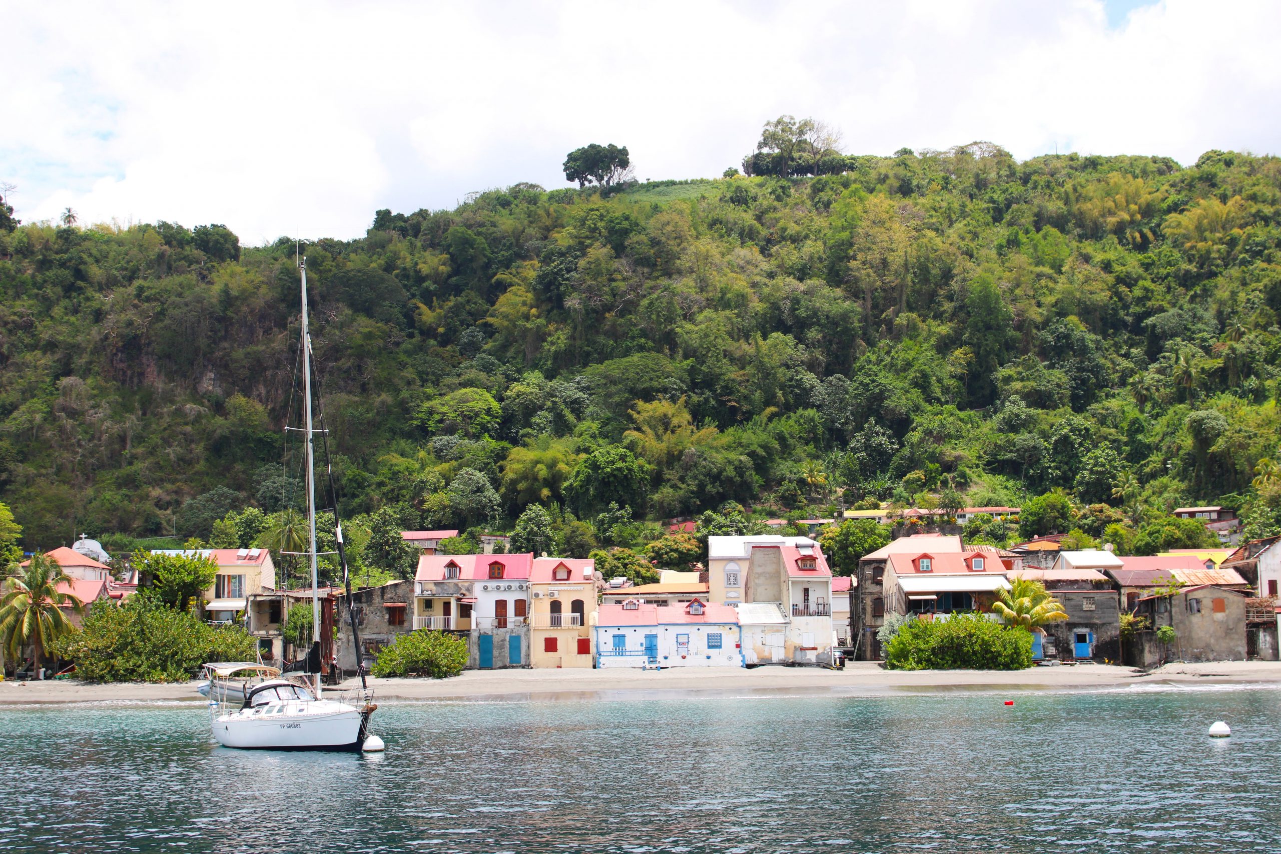 Nur ein paar Seemeilen weiter nördlich liegt Grande Anse d’Arlet, ein malerischer Ort mit kolonialem Dorfkern, Strandbars und, unter Wasser, einem echten Naturparadies. Die Bucht ist bekannt für ihre freundlichen Meeresschildkröten, die direkt zwischen den Ankern grasen, als würden sie zur Happy Hour vorbeischauen. Wir schnorchelten begeistert mit Jakobs Schwester und ihrem Partner zwischen bunten Fischschwärmen, Korallen und einer neugierigen Schildkröte. Der Ort eignet sich wunderbar für ruhige Tage, Sonnenuntergänge und den ein oder anderen Ti’ Punch (das karibische Pendant zum Aperol Spritz, nur stärker 😉).