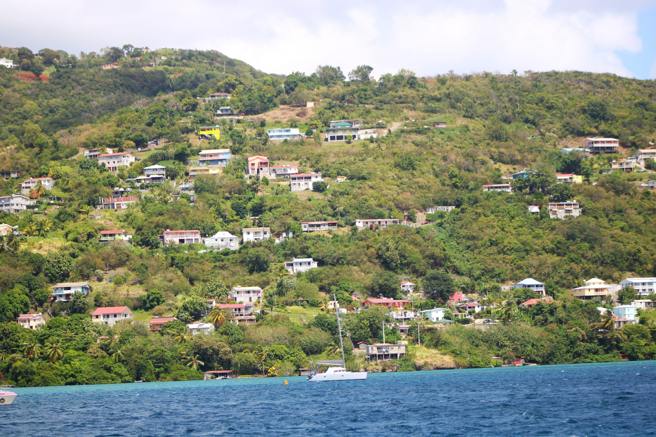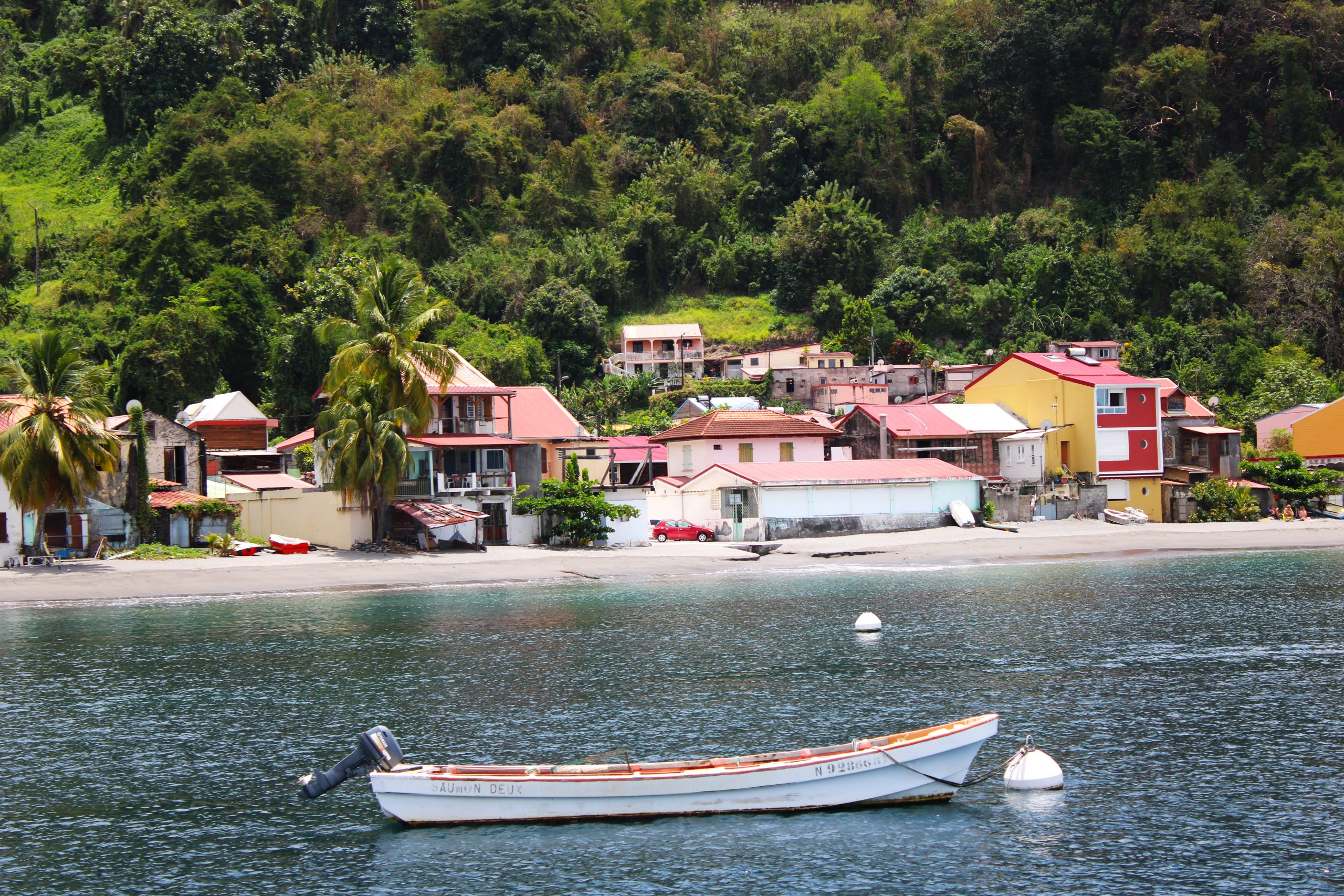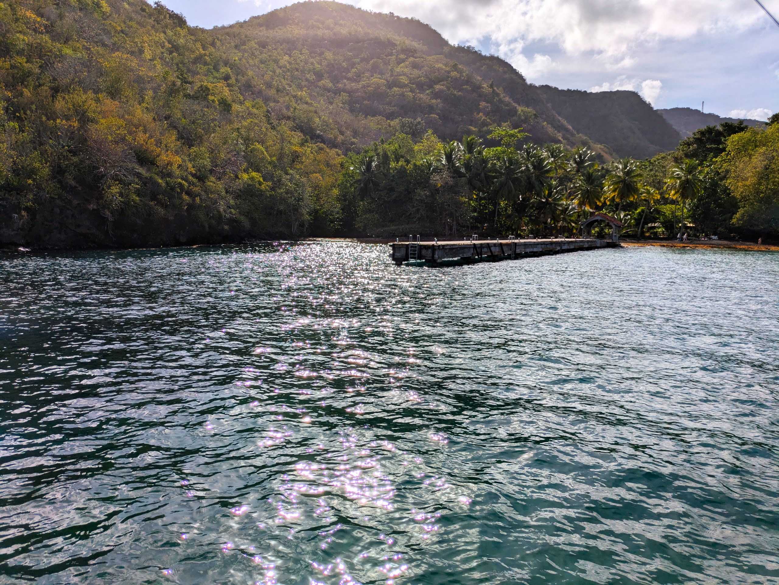 Nur ein paar Seemeilen weiter nördlich liegt Grande Anse d’Arlet, ein malerischer Ort mit kolonialem Dorfkern, Strandbars und, unter Wasser, einem echten Naturparadies. Die Bucht ist bekannt für ihre freundlichen Meeresschildkröten, die direkt zwischen den Ankern grasen, als würden sie zur Happy Hour vorbeischauen. Wir schnorchelten begeistert mit Jakobs Schwester und ihrem Partner zwischen bunten Fischschwärmen, Korallen und einer neugierigen Schildkröte. Der Ort eignet sich wunderbar für ruhige Tage, Sonnenuntergänge und den ein oder anderen Ti’ Punch (das karibische Pendant zum Aperol Spritz, nur stärker 😉).