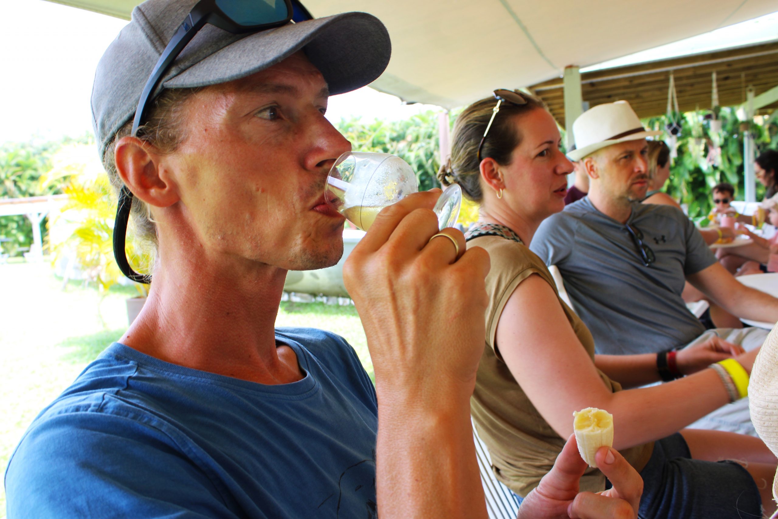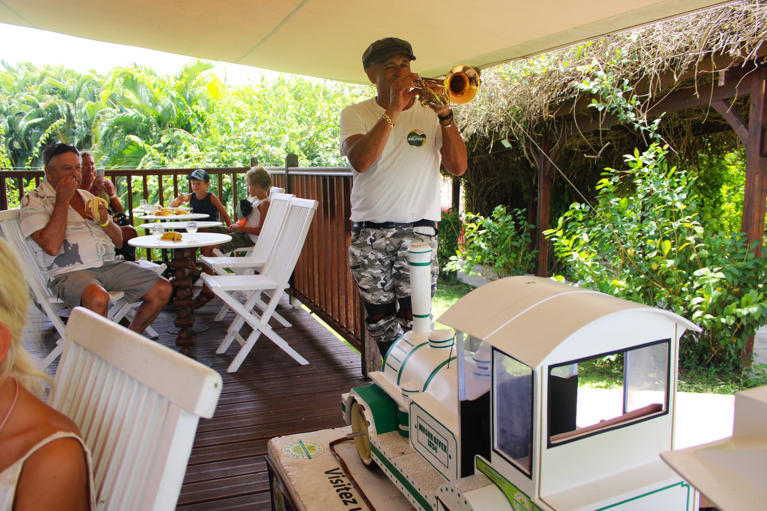 Ein weiteres Highlight war die Bananenplantage Belfort. Früher war die Bananenindustrie das Rückgrat der Inselwirtschaft, heute leidet sie stark unter der Konkurrenz aus Südamerika und anderen tropischen Regionen. Die Plantage war spannend zu besuchen, nicht nur wegen der Bananenstauden, sondern auch wegen der kleinen, super interessanten Zugfahrt mit dem Lokführer, der seine Trompete mitgebracht hatte und uns mit Musik begleitete. Wir lernten, dass Bananen keine Bäume, sondern Stauden sind. Jede Pflanze trägt nur ein Mal, dann wächst eine neue nach. Viel Handarbeit, viel Pflege. Die kleine Bananenbahn mit musikalischem Lokführer war ein Hit für die Kinder, sowie die “Zwillingsbanane”, die zu „speziell“ für den Verkauf war. Dafür umso leckerer.