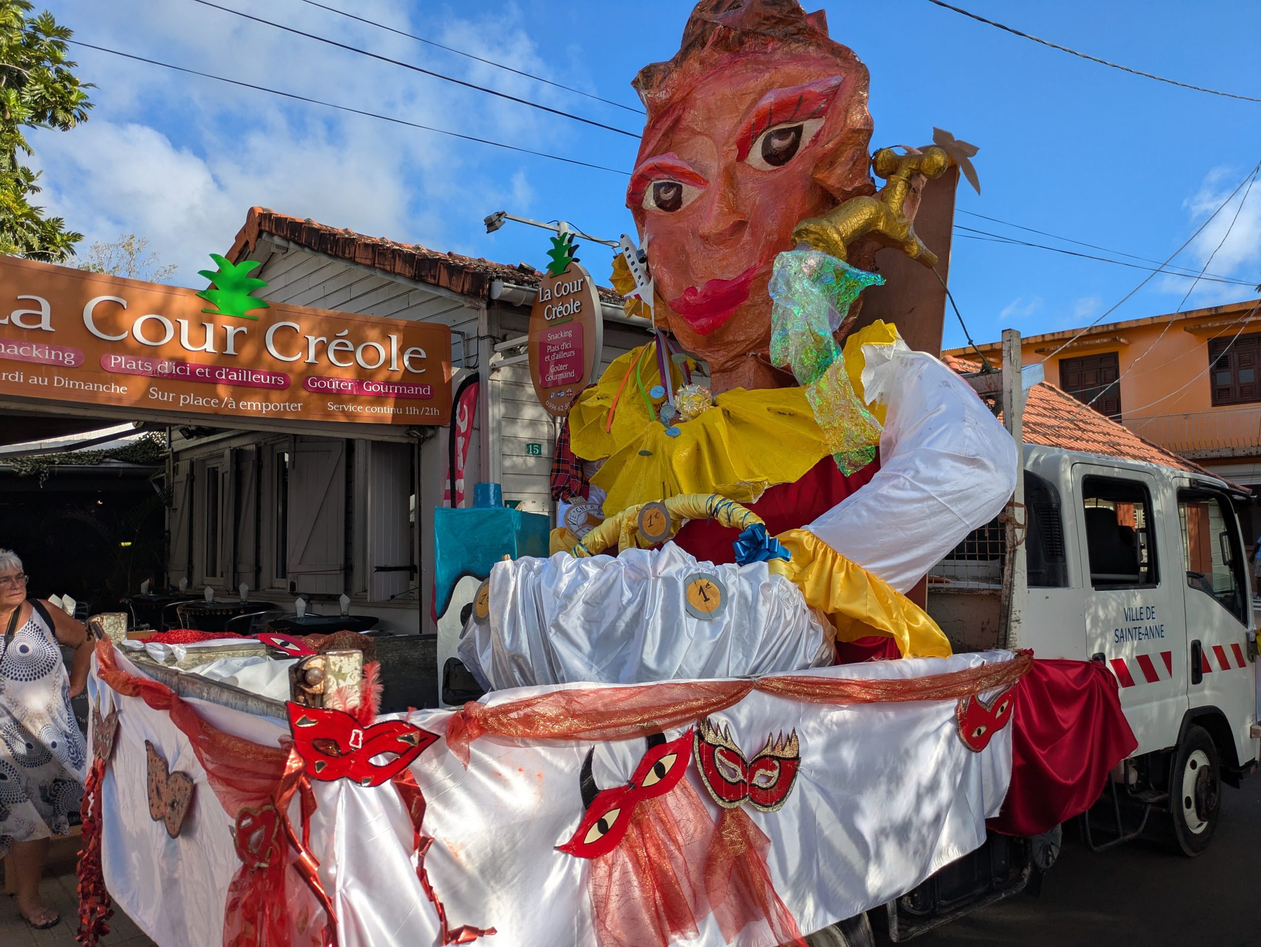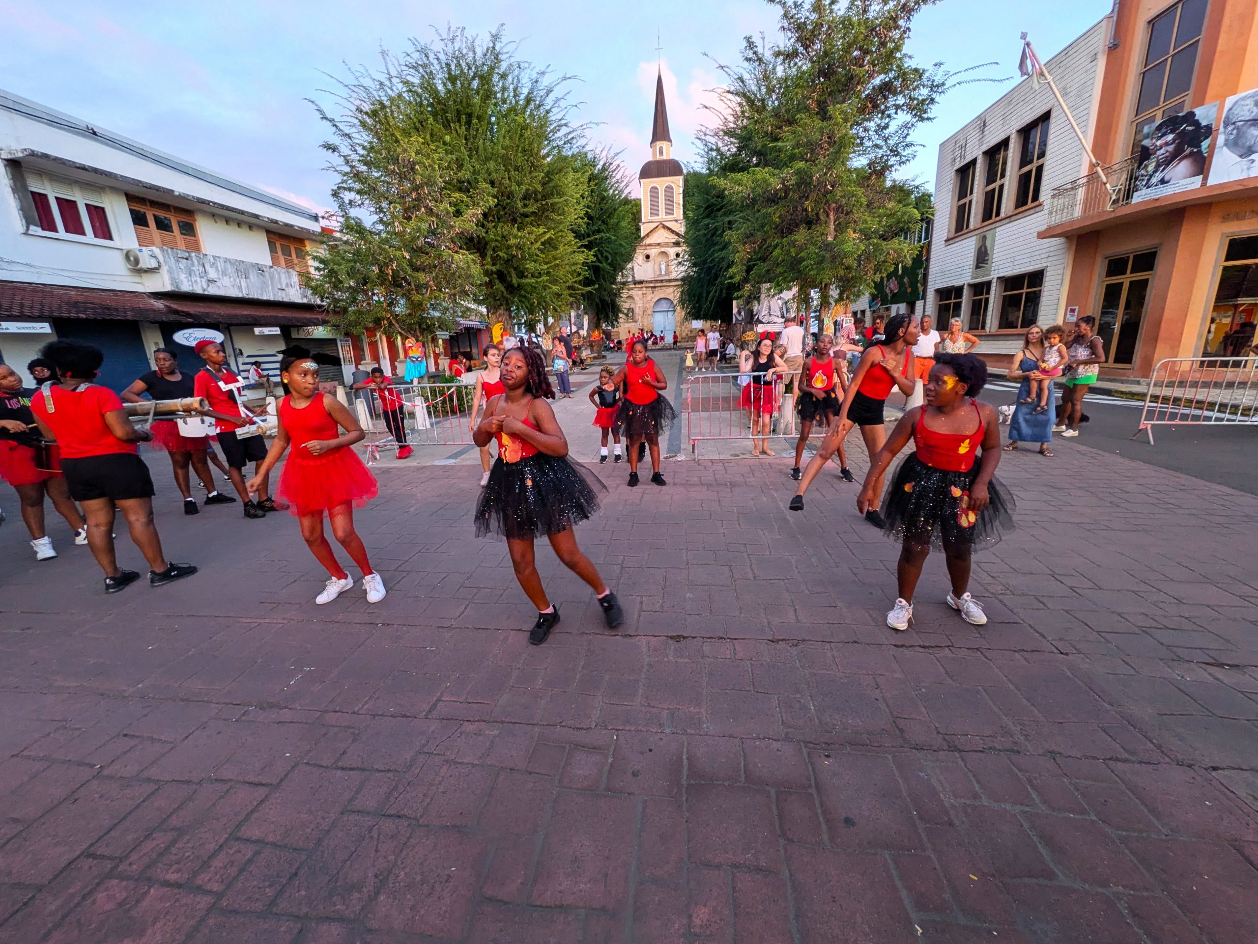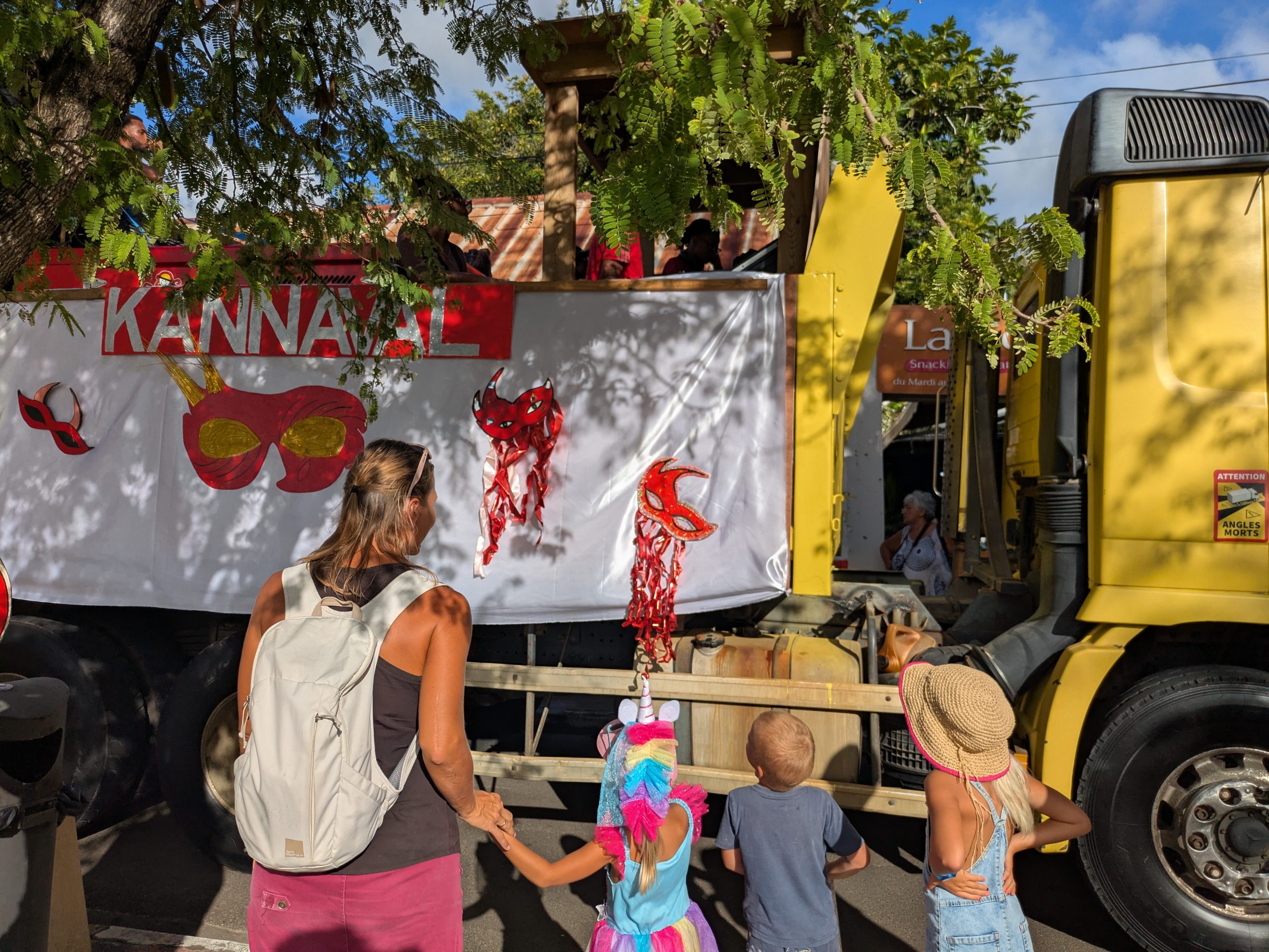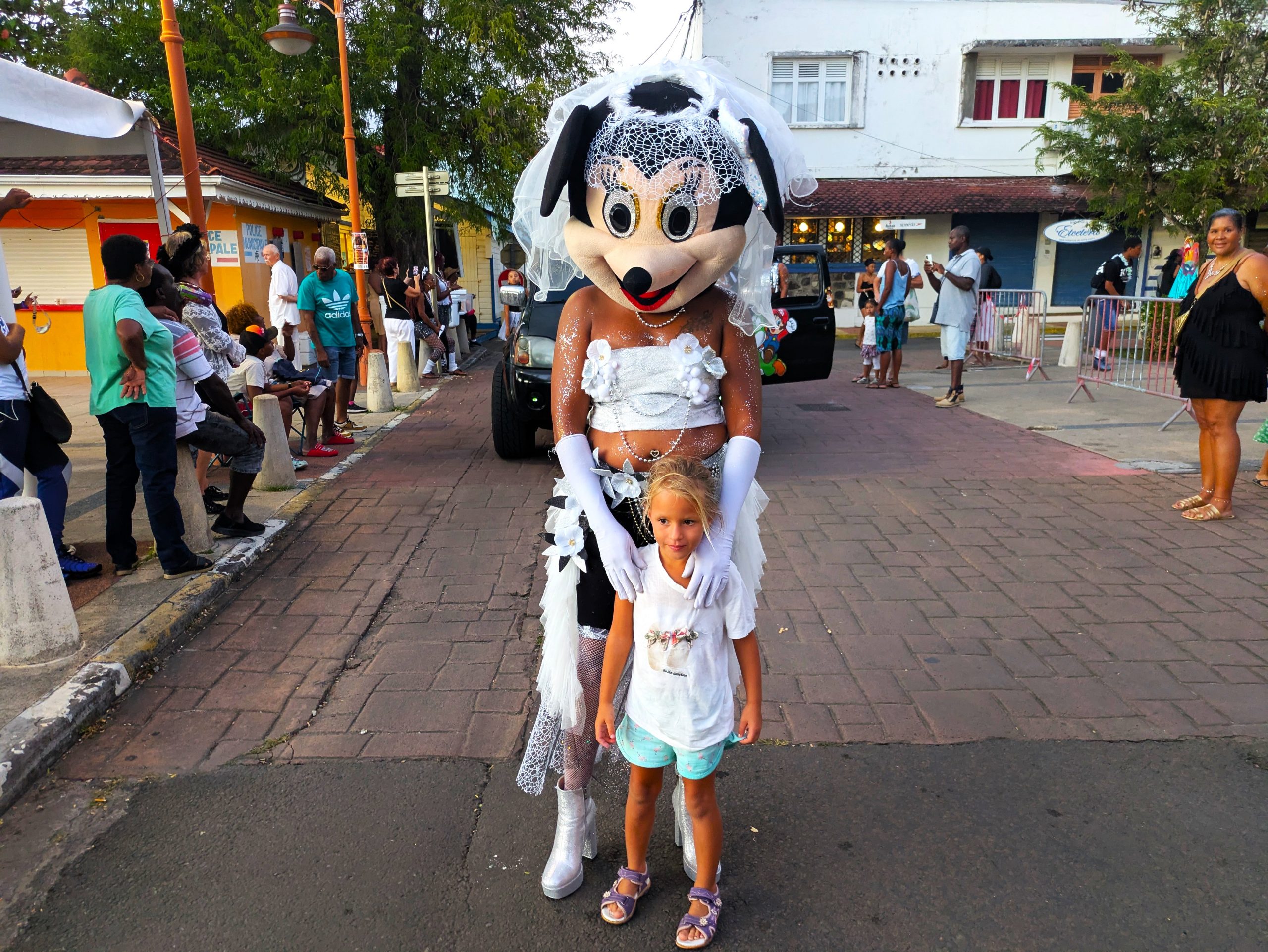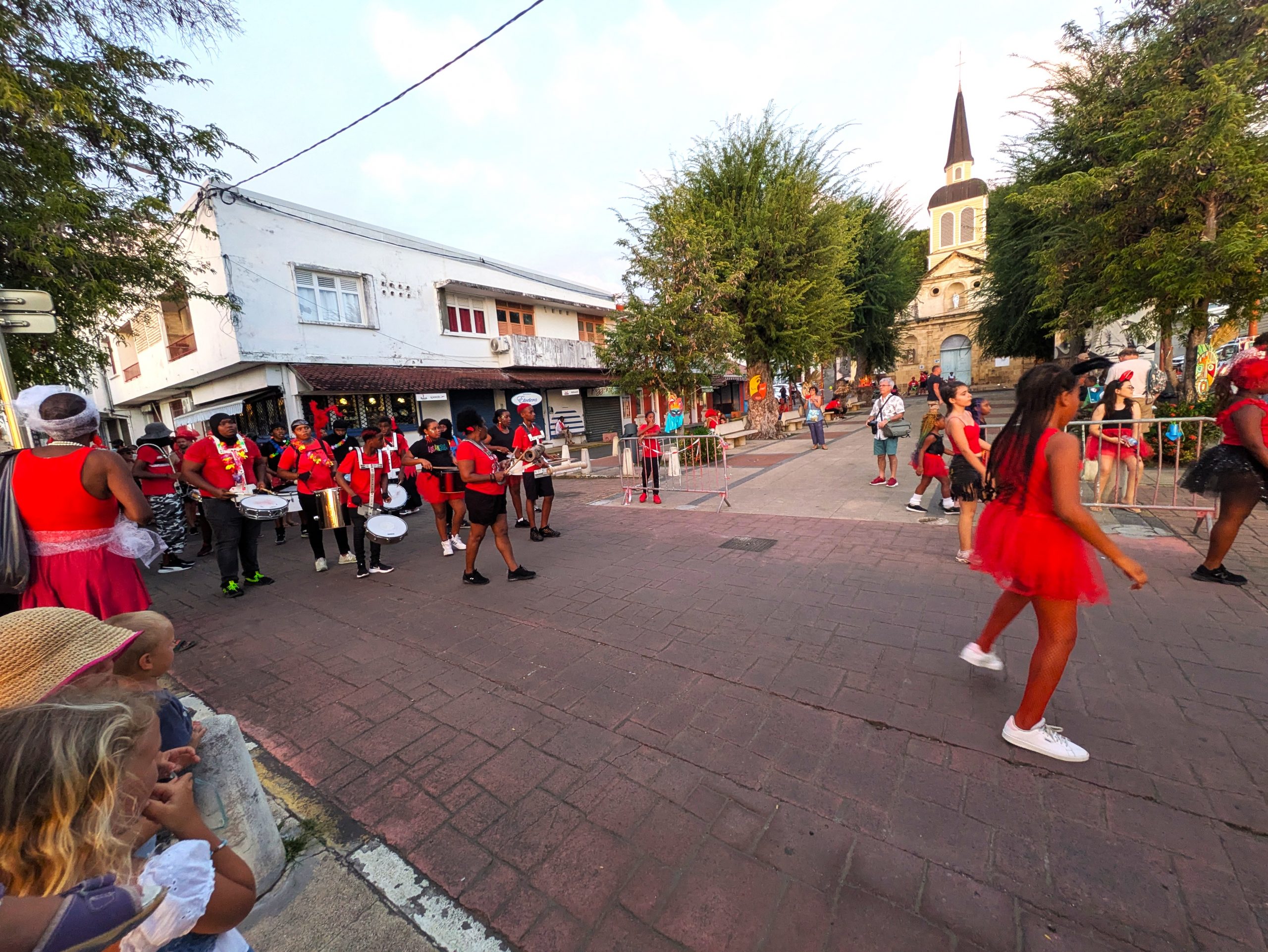 Mardi Gras (Fetter Dienstag) –  waren wir dann mittendrin. Die Straßen voller Musik, Farben und Glitzer. Überall tanzende Menschen, selbst die Kleinsten mit Perücken oder Pappmasken. Die Kreativität der Kostüme war überwältigend – mal kunstvoll, mal völlig improvisiert, aber immer mit Herzblut und guter Laune. Als am Nachmittag schließlich die berühmte „Red Devils“-Parade durch Sainte-Anne tobte – rot-schwarze Teufel, die lärmend und lachend das Chaos zelebrierten, standen auch unsere Mädels mit offenem Mund am Straßenrand. Es war laut, heiß, wild  und wunderbar.