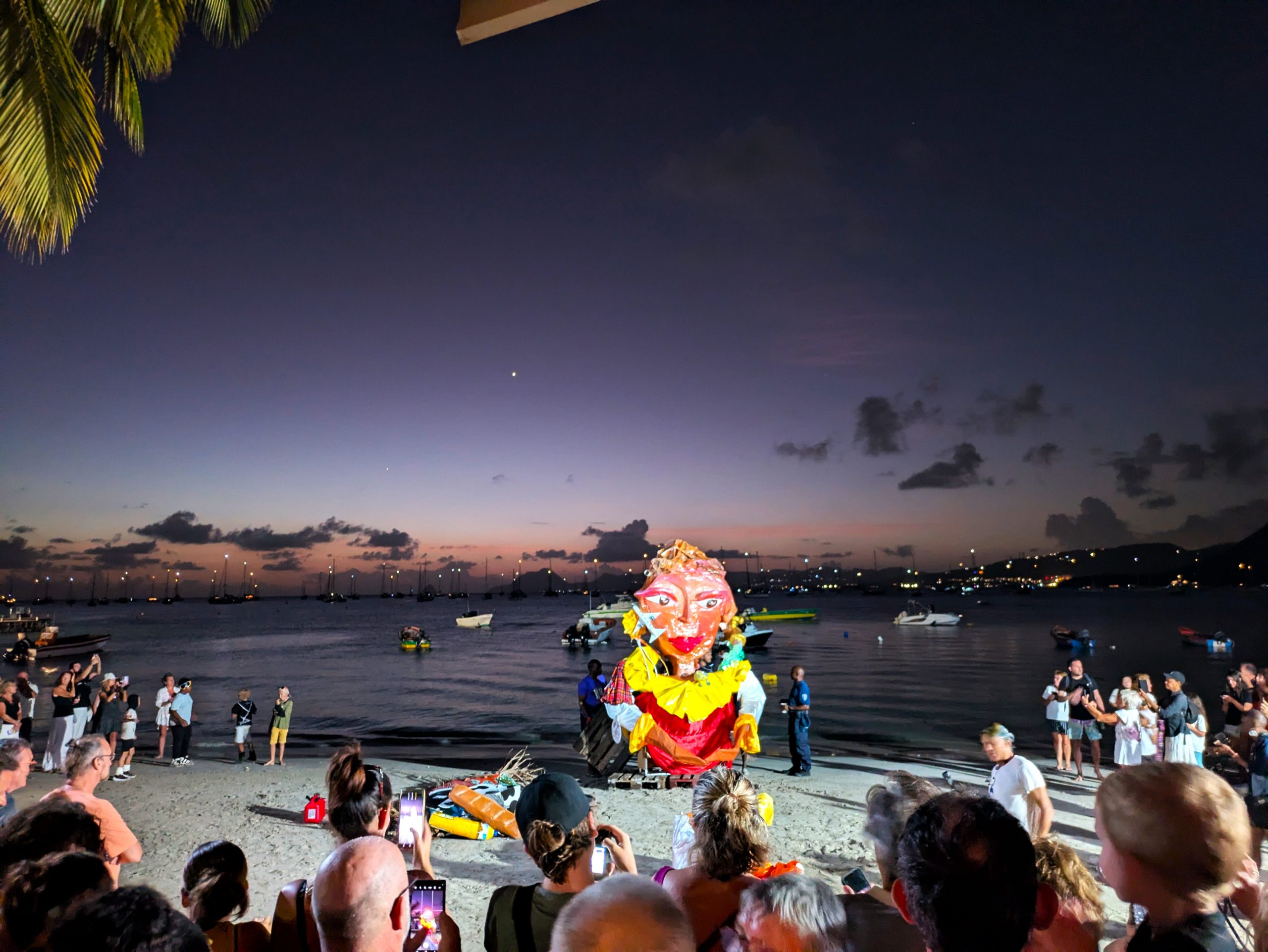 Ankern mit Blick auf Palmen, türkisfarbenes Wasser und ein kunterbuntes Treiben an Land. Sainte-Anne im Süden von Martinique begrüßt Segler mit einer Mischung aus tropischem Postkartenflair und karibischer Lebensfreude. Dass wir genau in dieser Zeit dort festmachen, war kein Zufall. Karneval auf Martinique ist legendär und Sainte-Anne ein Zentrum des ausgelassenen Treibens. Zwar kamen wir erst am Montag an, wussten aber, was uns erwartet. Während wir noch unser Ankerfeld erkundeten, waberten bereits die ersten Trommelklänge und schrillen Rufe von Land zu uns herüber. Palmen im Wind, Boote im Abendlicht – und mitten darin vier Tage karibischer Ausnahmezustand.