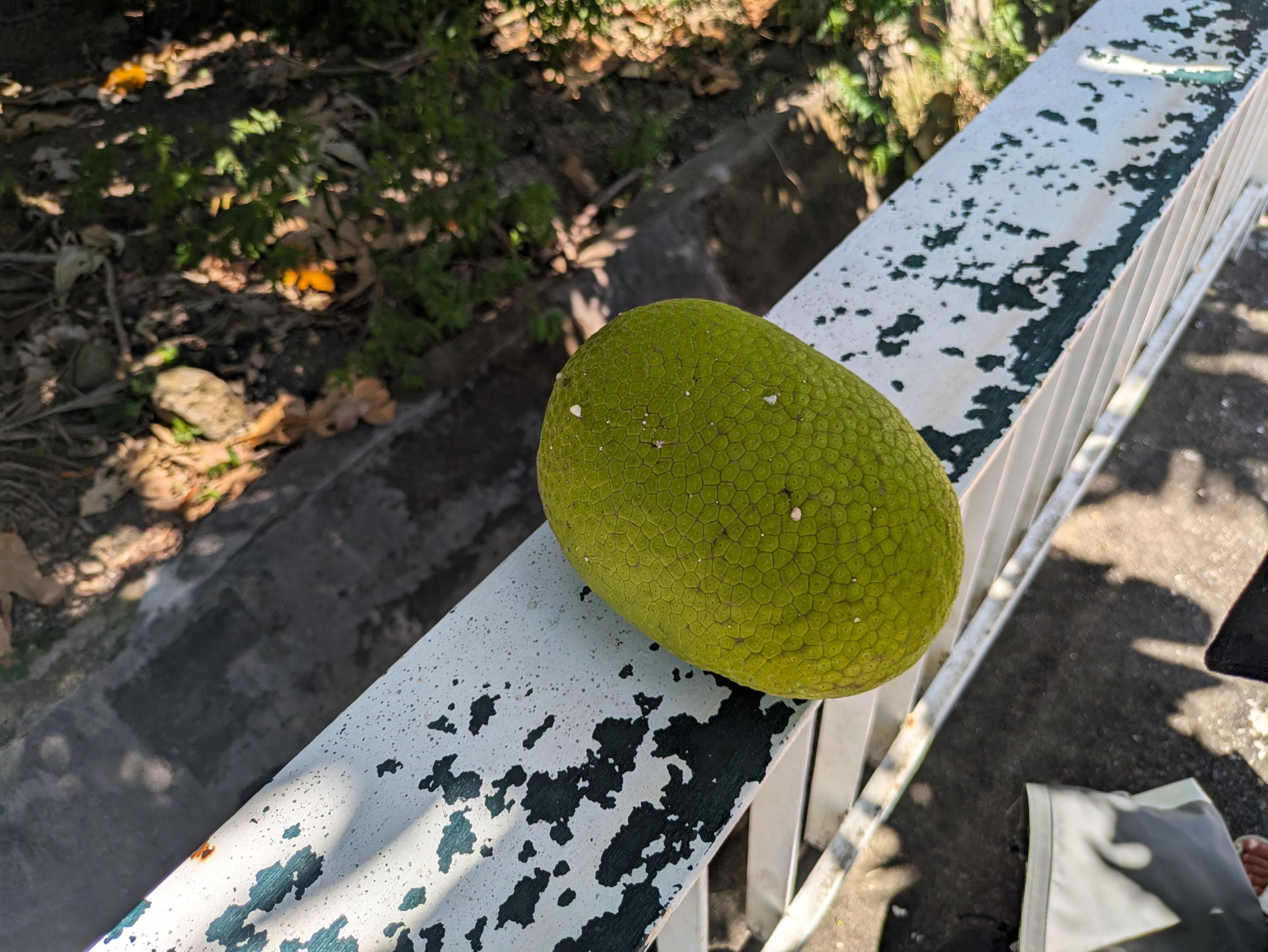 Natürlich darf auch das Kulinarische nicht fehlen. Direkt vom Straßenrand kamen sie: Accras! Diese frittierten Fischbällchen sind so ziemlich das leckerste Streetfood Martiniques – goldbraun, heiß und lecker. Dazu eine wilde Brotfrucht, die uns auf dem Weg “quasi in den Rucksack gefallen ist“ 😇, und frische Früchte, die wir schon aus Barbados kannten. Kleine Beutezüge mit großem Geschmack.