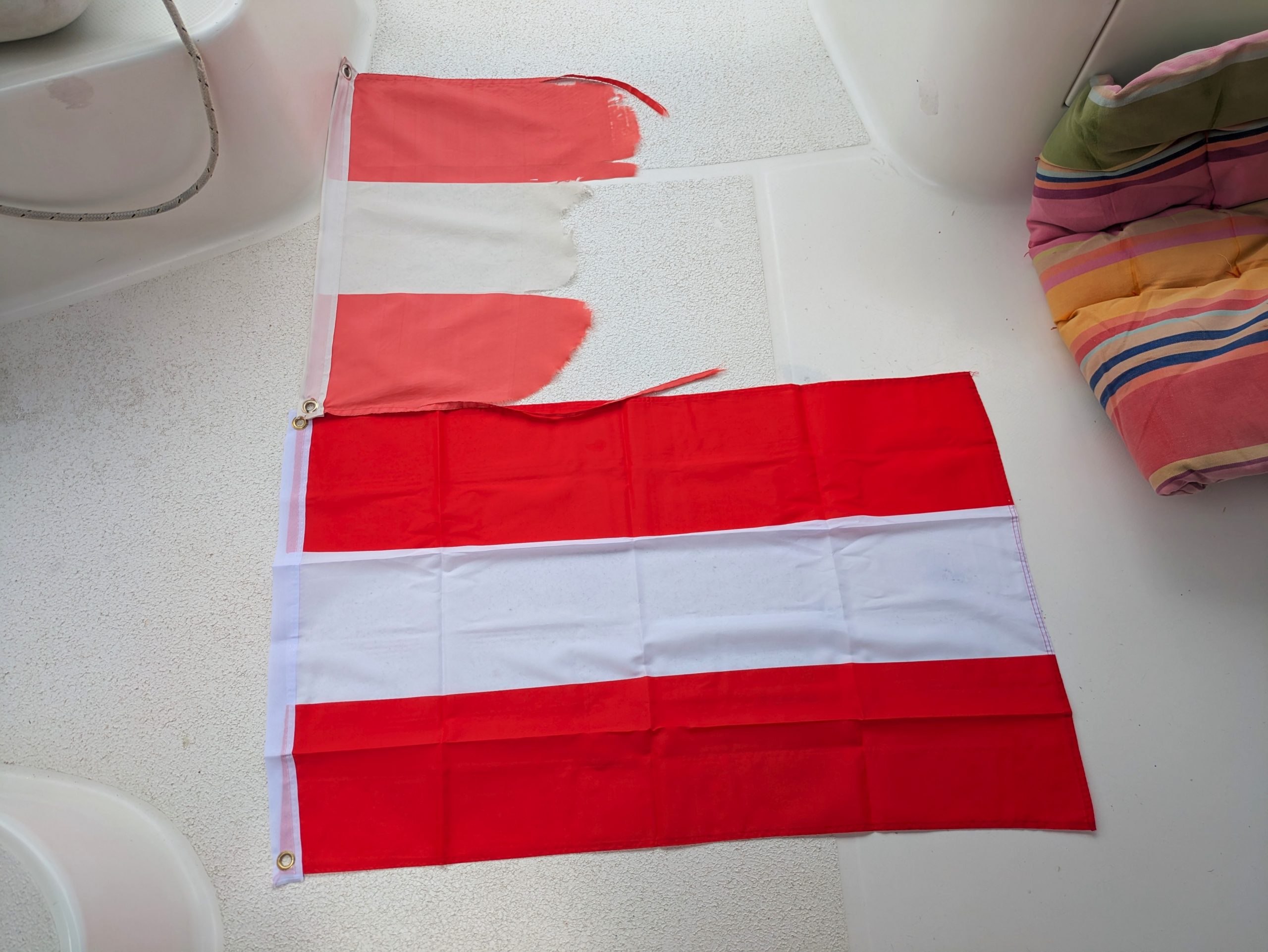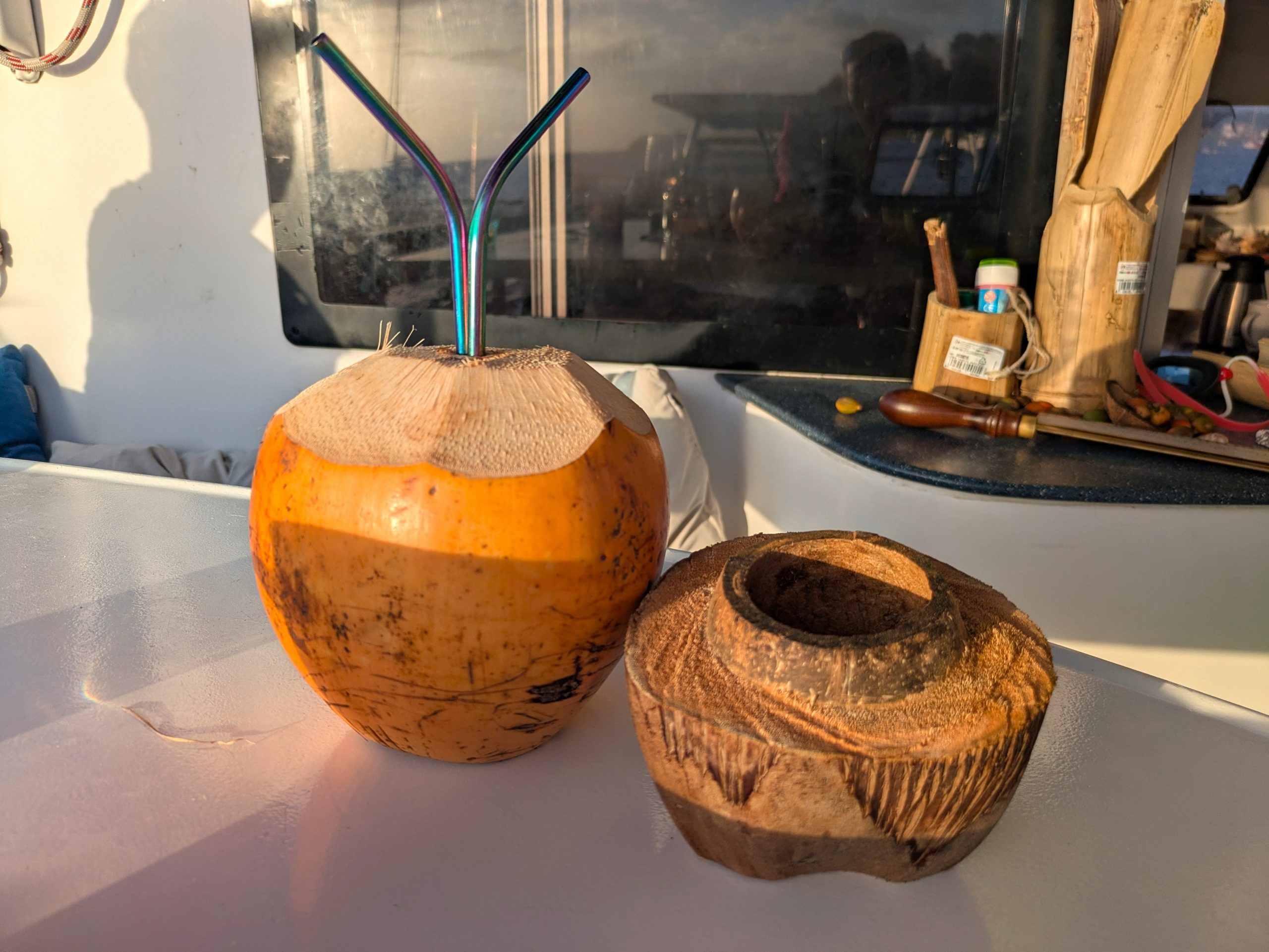 Was ebenfalls goldwert war: Unser seit der Atlantiküberquerung angeschlagenes Ruderlager wurde endlich repariert (geschweißt). Halleluja. Der Segler-Stammtisch in Le Marin versorgte uns zusätzlich mit Tipps zu rostfreien Schrauben, Werkzeugen und, ganz wichtig: den besten Baguettequellen.