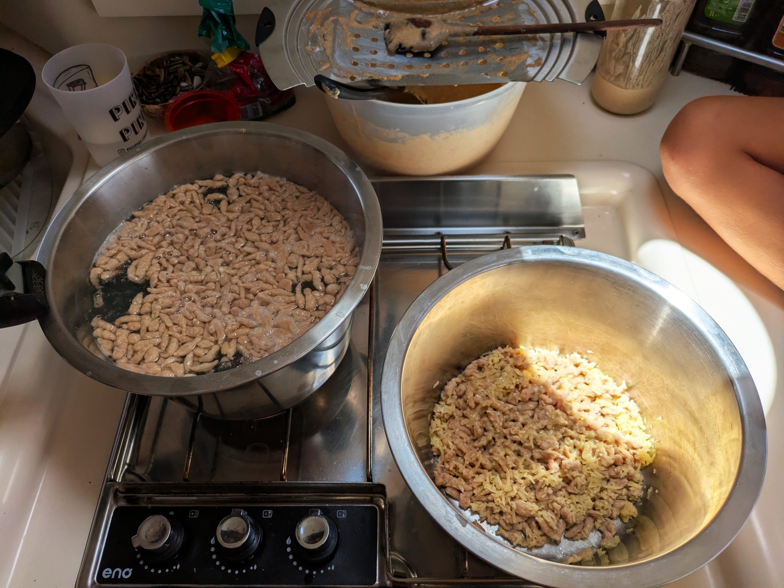 Es begann noch in derselben Nacht bei unserer Dorothea. Am nächsten Tag erwischte es auch Ludowika und ein befreundetes Kind. Unsere Mädels lagen fünf Tage lang flach. In den ersten zwei bis drei Tagen konnten sie nichts bei sich behalten – selbst Wasser nicht. Wir entschieden von Tag zu Tag, ob wir zum Arzt gehen oder noch abwarten. Am Ende schafften wir es alleine, sie langsam wieder aufzupäppeln. Jeder kleine Löffel Joghurt oder Soletti (Salzstangen), der drin blieb, war ein Erfolg. Als Eltern war es extrem belastend, die beiden so schwach und still zu erleben. Und es war das erste Mal überhaupt, dass unsere Mädels richtig krank waren – mit 7 und 4 Jahren. Toi, toi, toi – möge es dabei bleiben. Und dann doch lieber ab und an ein kleiner Streit zwischen den beiden und lautes Schreien als diese Stille und Ruhe. ☺️