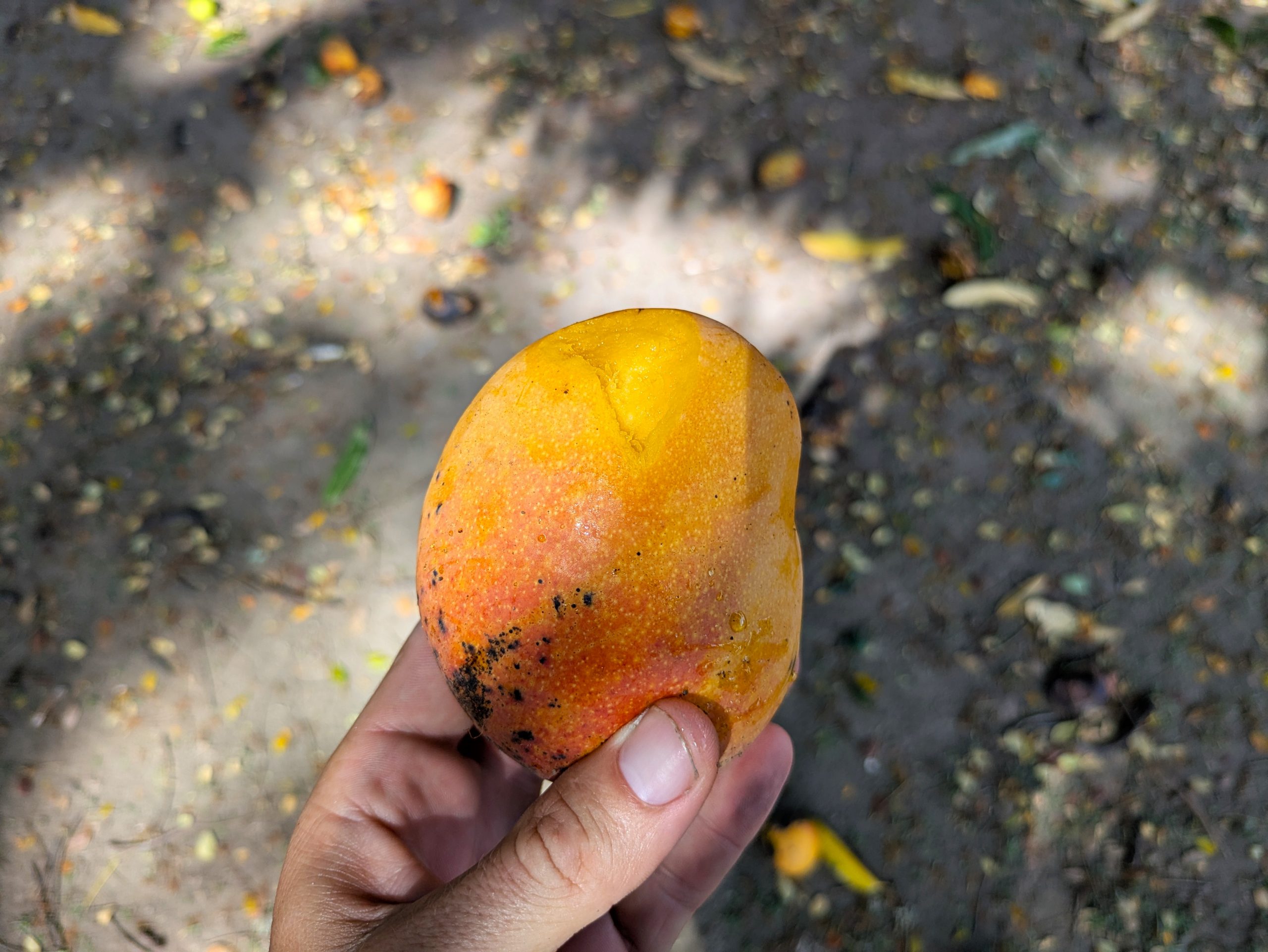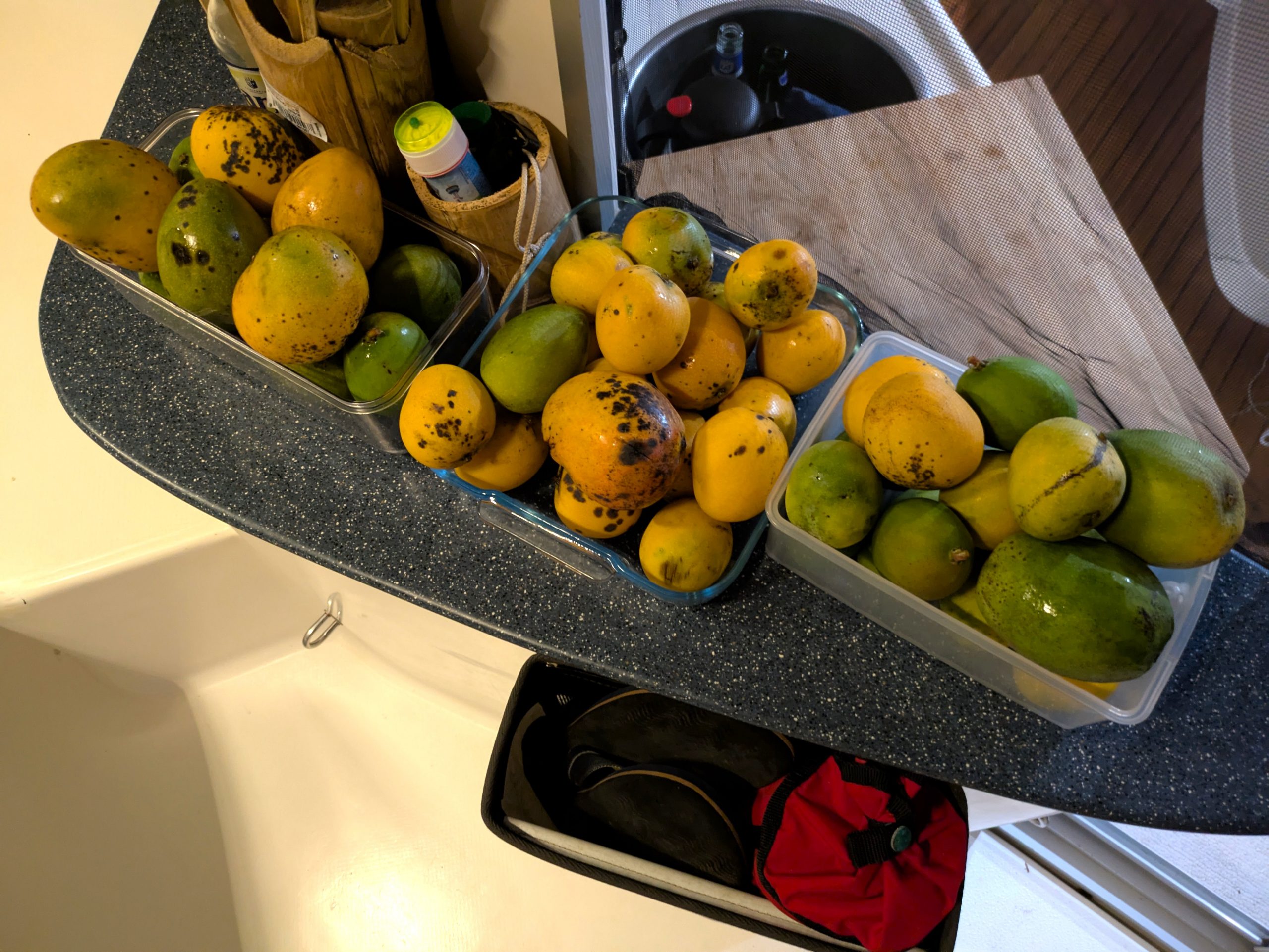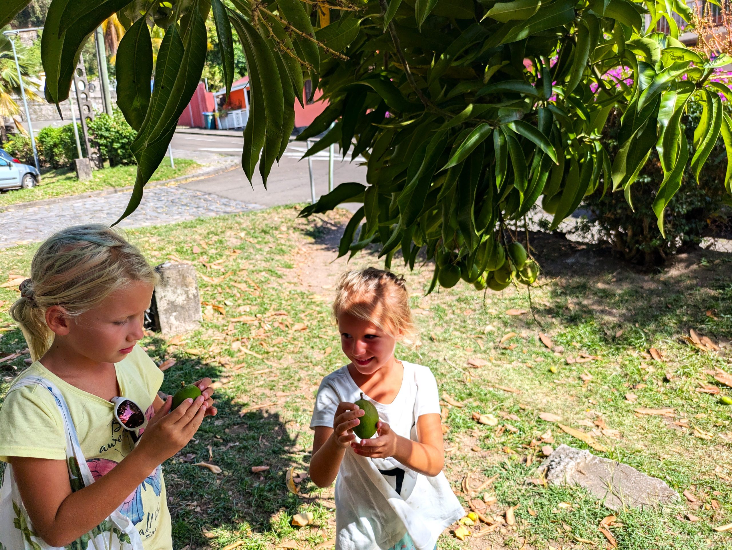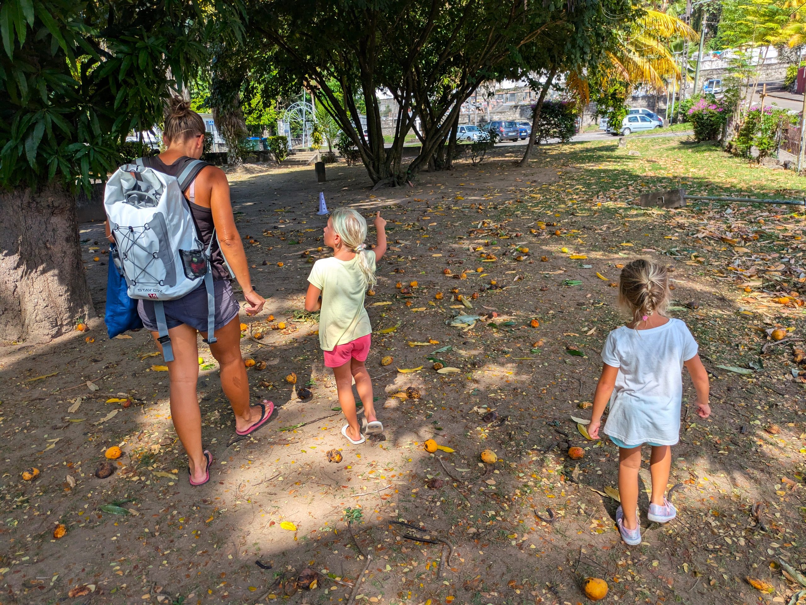 Hinter der Kirche fanden wir einen verwilderten Garten mit mindestens fünf riesigen Mango-Bäumen – reif, saftig und gratis! (Sofern man flink genug ist.) Wir konnten kaum fassen, dass hunderte Mangos am Boden lagen und keiner sie sammelte. Mit zwei vollen Taschen ging es zurück aufs Boot, wo alles zu Eis oder Mangomus fürs Müsli und Joghurt verarbeitet wurde.