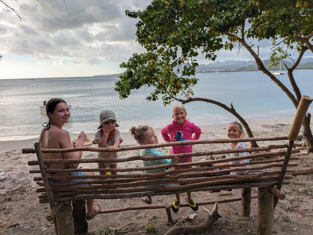 So etwa 2 Stunden vorm Sonnenuntergang ging es dann wieder ans Ufer. Kurz danach kam auch schon „All-Inclusive“ mit seinem kleinen Bruder, dem Essen und einer großen Kühlbox. Das Essen hat er Zuhause selber vorbereitet und gekocht und als Nachtisch hatte er Bier, welches hier auf St. Lucia gebraut wird, und für die Kinder massig Eis organisiert. Während all der Unterhaltung – ich habe den Eindruck von einem tüchtigen, klugen und ehrlichen jungen Mann erhalten – hatte er (und viel mehr noch sein kleiner Bruder) stets ein Blick aufs Meer und sah sofort wenn ein Schiff auf die Bucht zukam – ein potentieller Gast dem er seine Dienste anbieten kann.