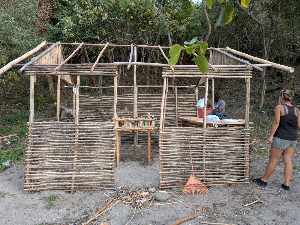 Auf der „popucu“ ankommend, diese erkundend und in Beschlag nehmend (zumindest das steuerboard-seitige Unterdeck) verging der restliche halbe Tag recht schnell. Und auch der folgende (erste ganze) Tag in der Karibik war durchs Vor-Anker-Liegen in der Vieux Fort-Bucht gekennzeichnet. Am Vormittag waren wir mit „Stand-Up-Paddel“ und „Dingi“ an den nahen Strand geschwommen/gefahren. An diesem wurden gerade 3 Bambus-/Holzhütten errichtet. Zwei Männer – uns mit „hey my brother“ begrüßend – werkelten daran und erschufen eine zukünftige Strandbar. Von Norbert (einem 60 jährigen „eigentlichen Fischer“ , der etwas von einem 30 jährigen Athleten hatte) erfuhr man, dass sie hier seit Dezember das Ufer vom Gebüsch befreit haben, nun diese Hütten errichten und danach zunehmend Gäste begrüßen wollen. Über den Tag verteilt (wir waren wieder auf dem Boot) kam „All-Inclusive“ glaube ich noch 2-3 mal (wenn nicht sogar 5 mal) vorbei und fragte wie viel Fisch und Hühnchen wir am Abend haben wollen, und ob wir noch was anderes benötigen. Ich glaube er war nur furchtbar nervös wegen des Essens, dass er für uns zubereiten wollte.